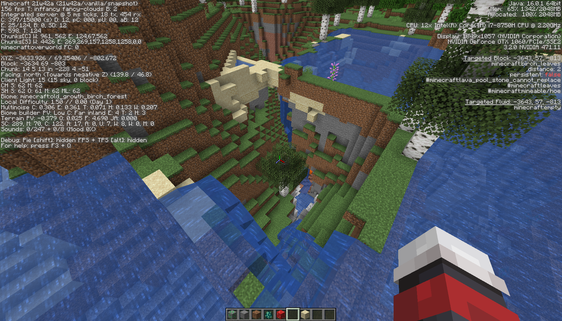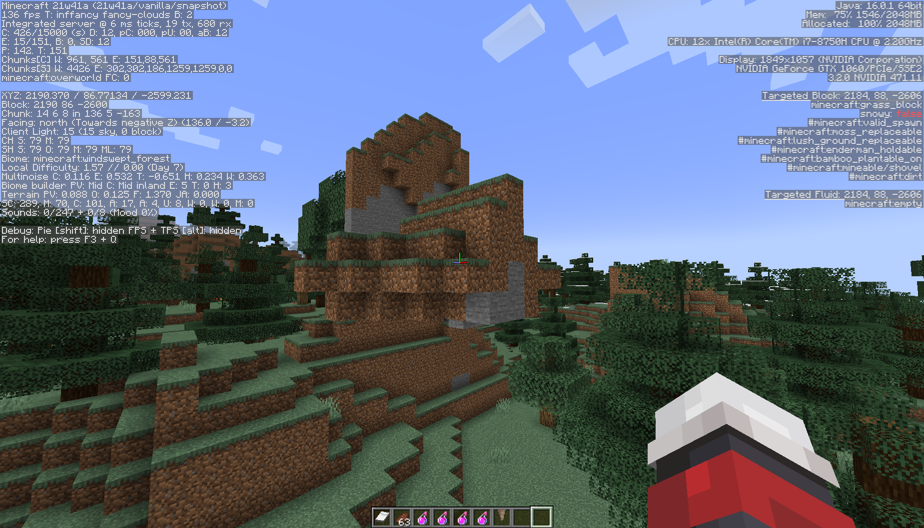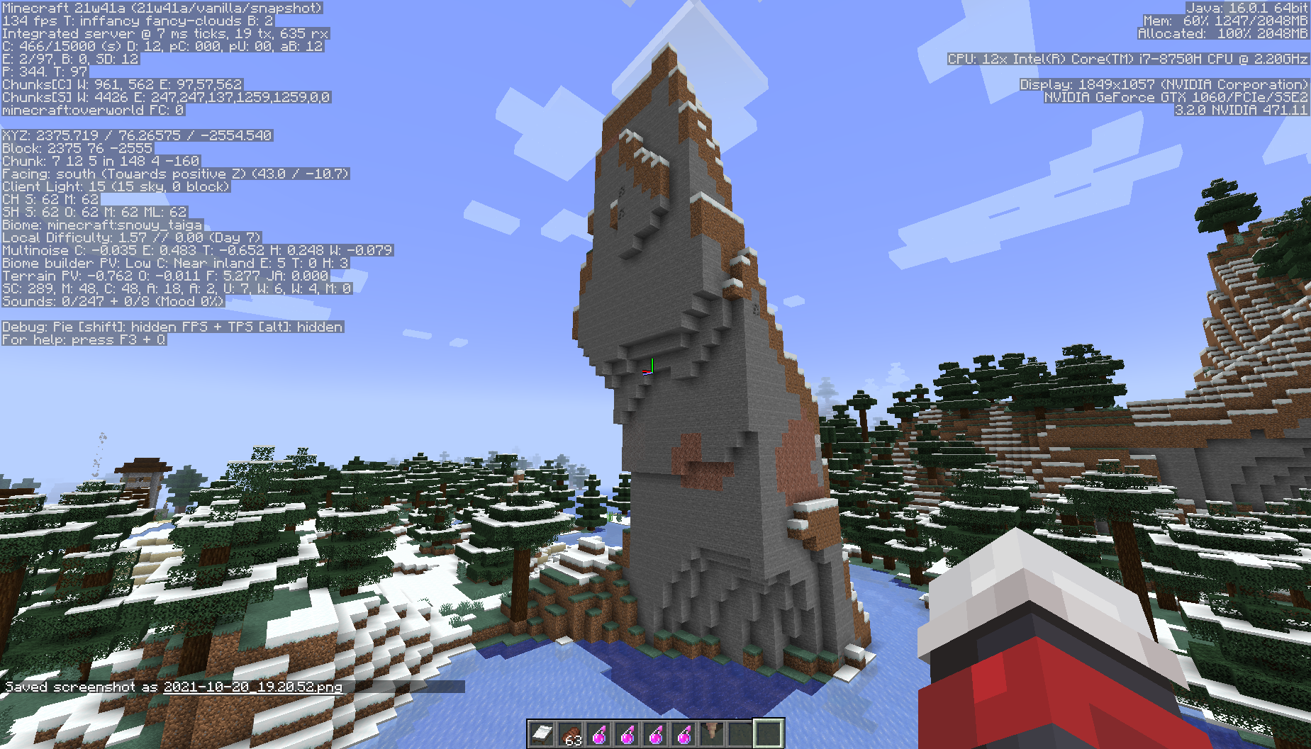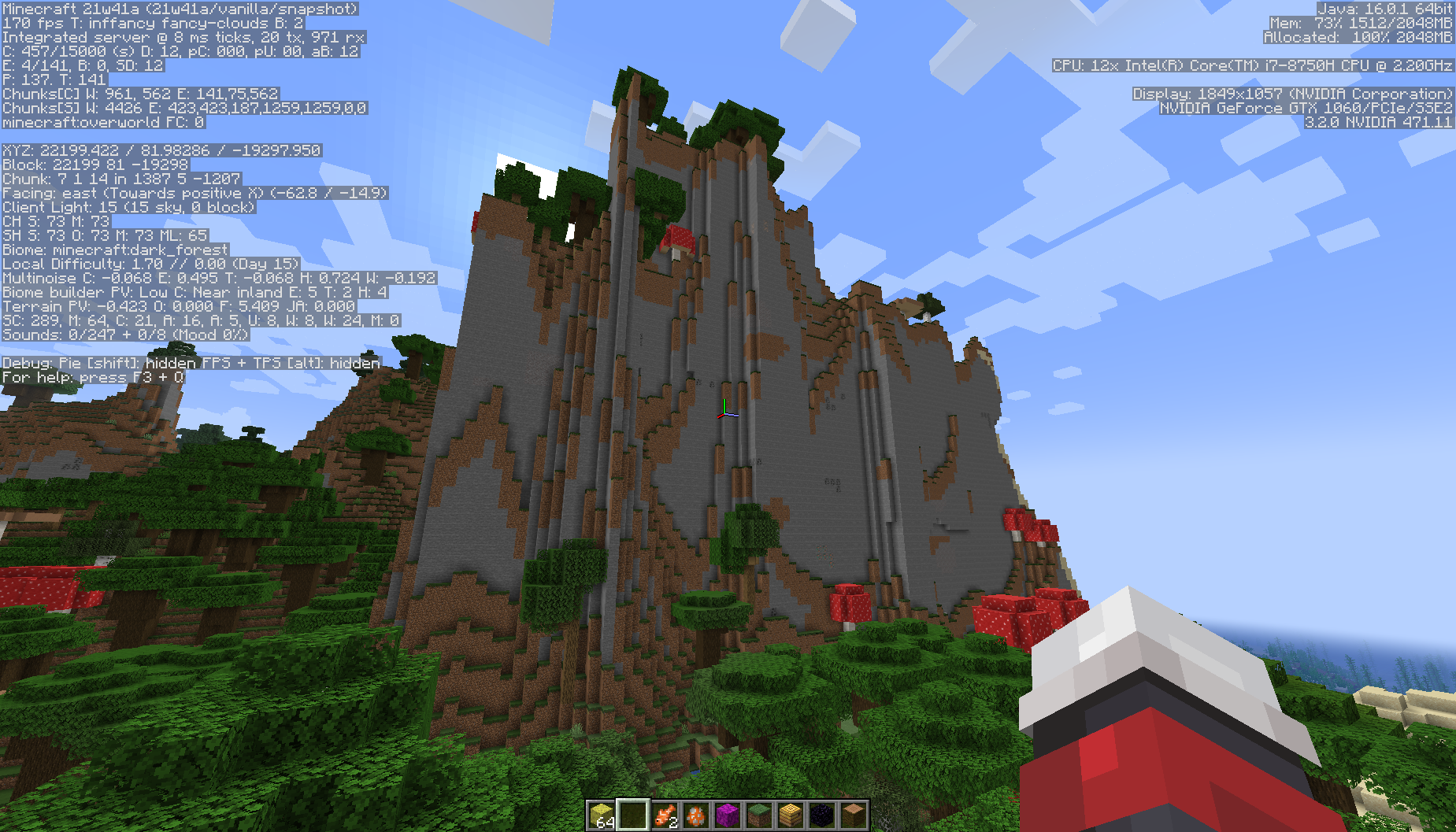 Unusual generations of blocks in Windswept Forest biome for the current seed above and specified coordinated below.