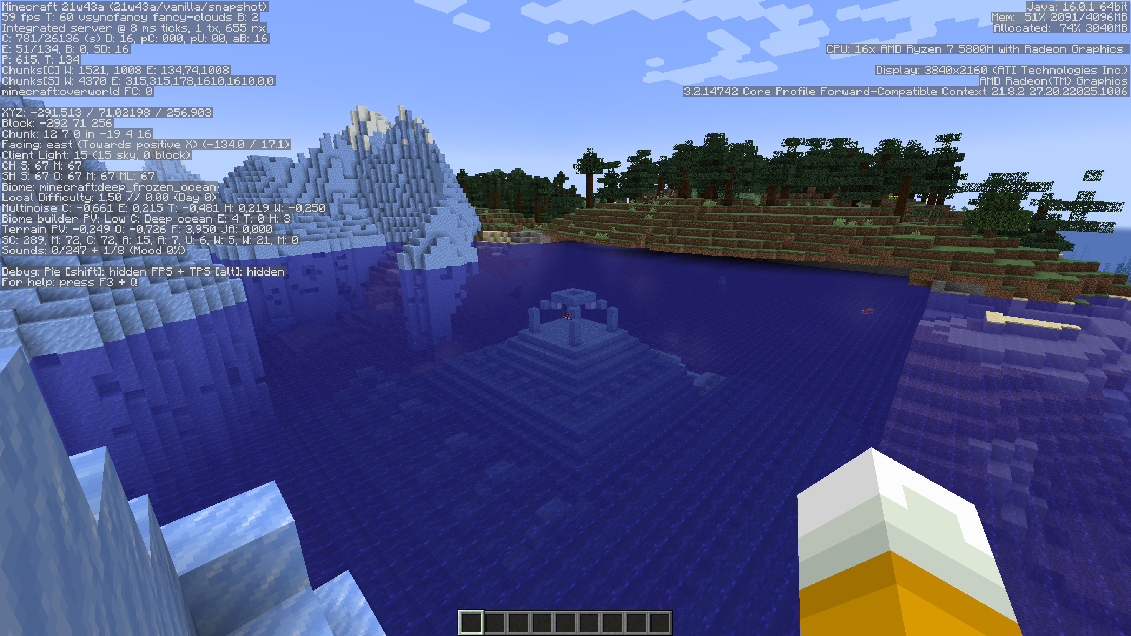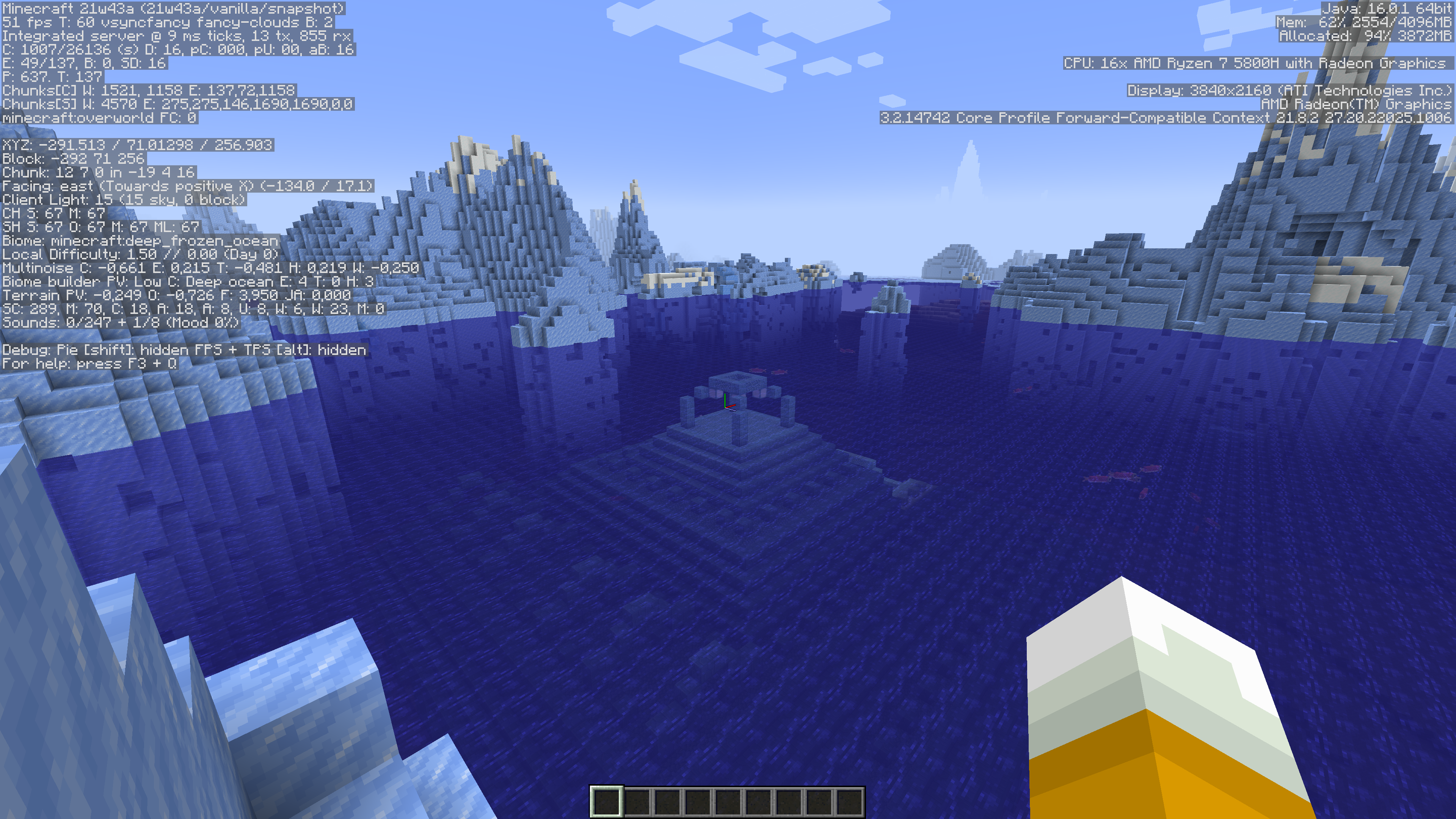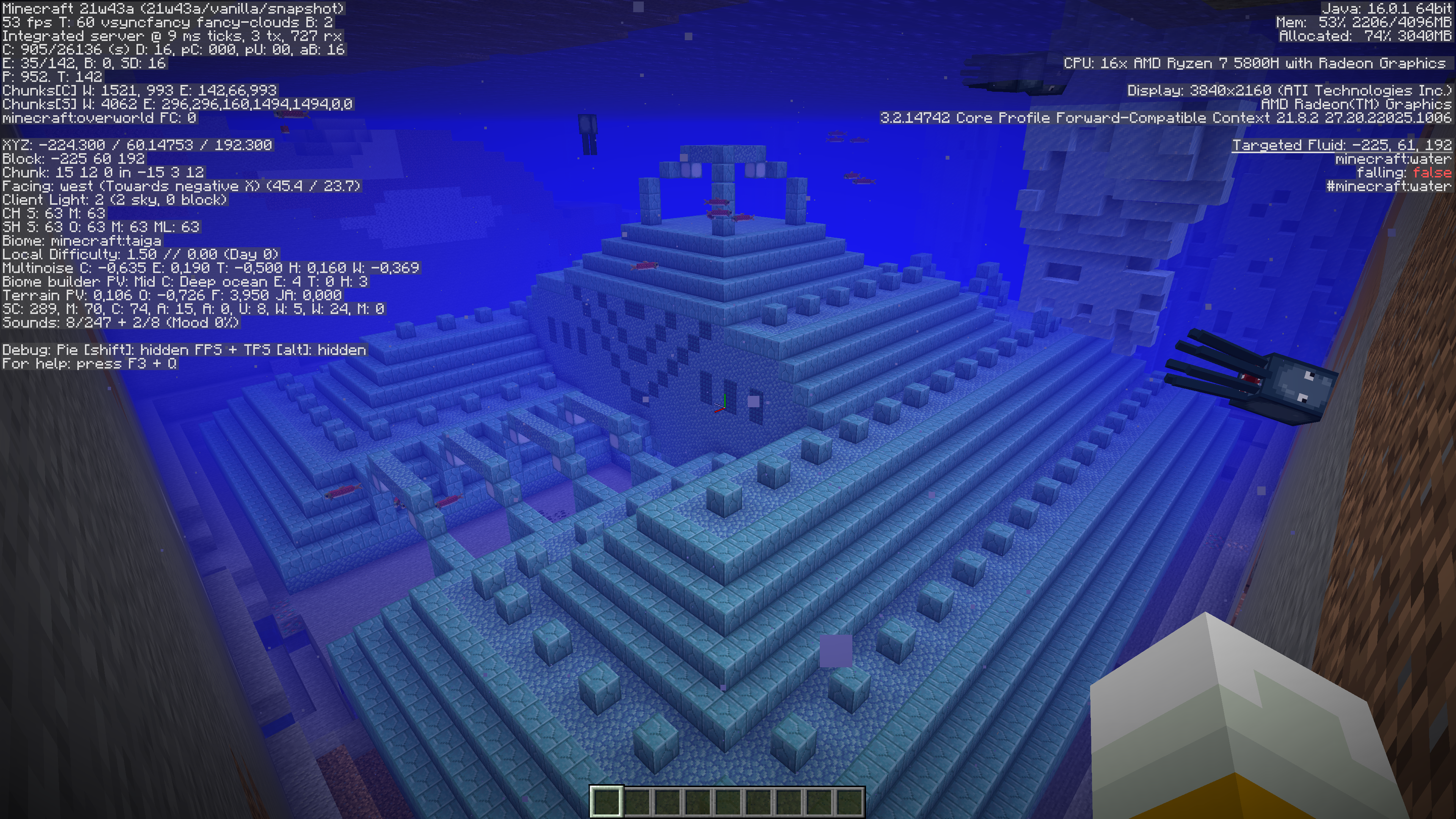 If we generate a new world in 21w43a using the same seed the ocean monument looks like this: