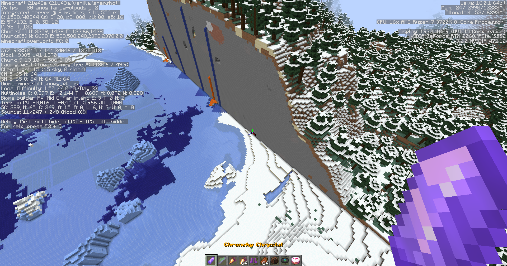When I generate a world in version 21w42a and then upgrade to 21w43a the chunk transitions are choppy