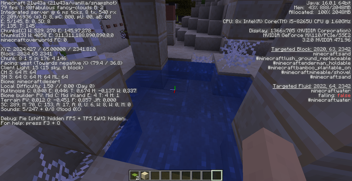 Coordinates: /execute in minecraft:overworld run tp @s 2817.64 64.00 2340.22 301.12 24.55Steps to Reproduce:
