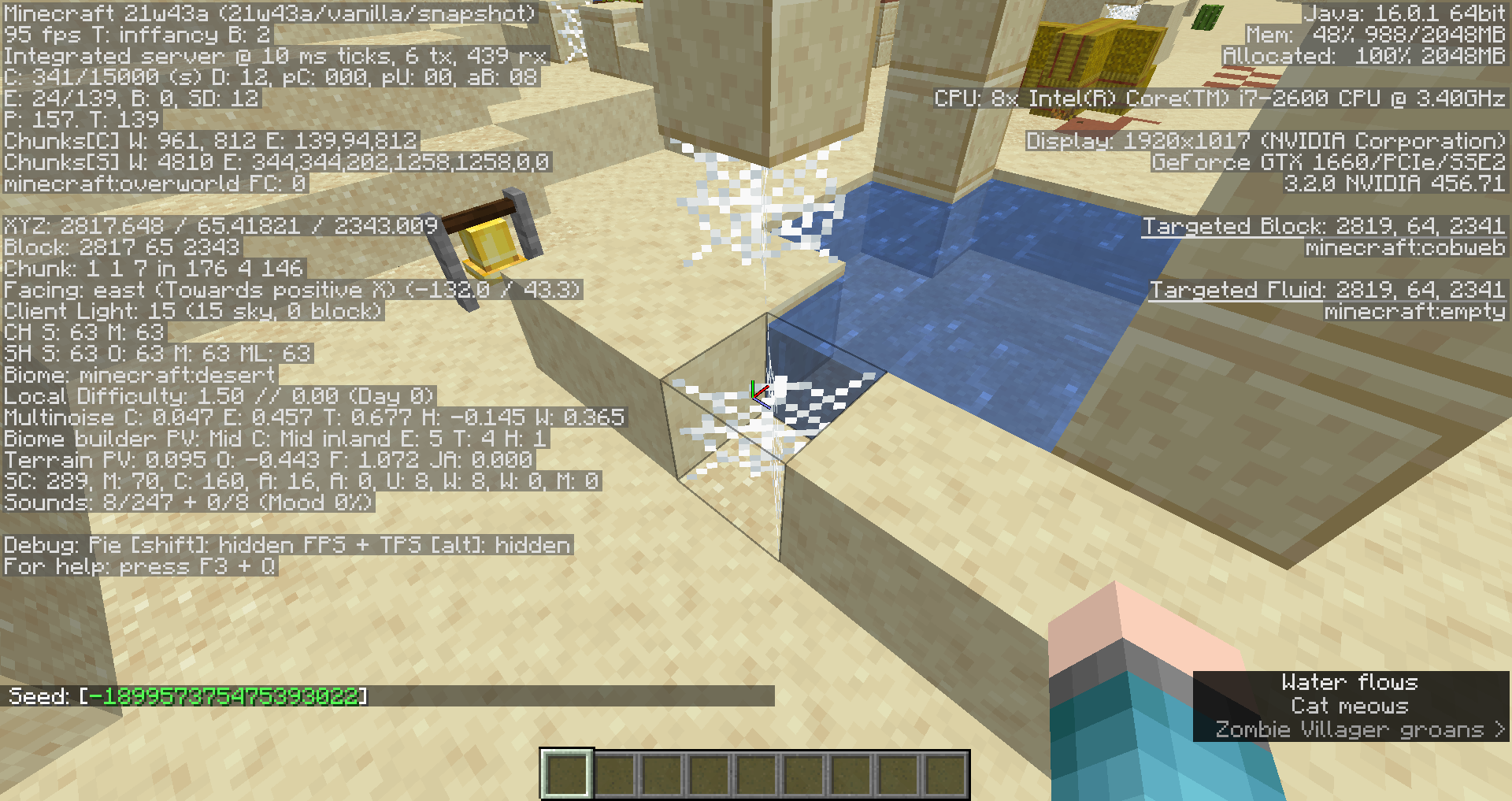 Take note as to whether or not water doesn't flow when cobwebs generate next to it in zombie villages.