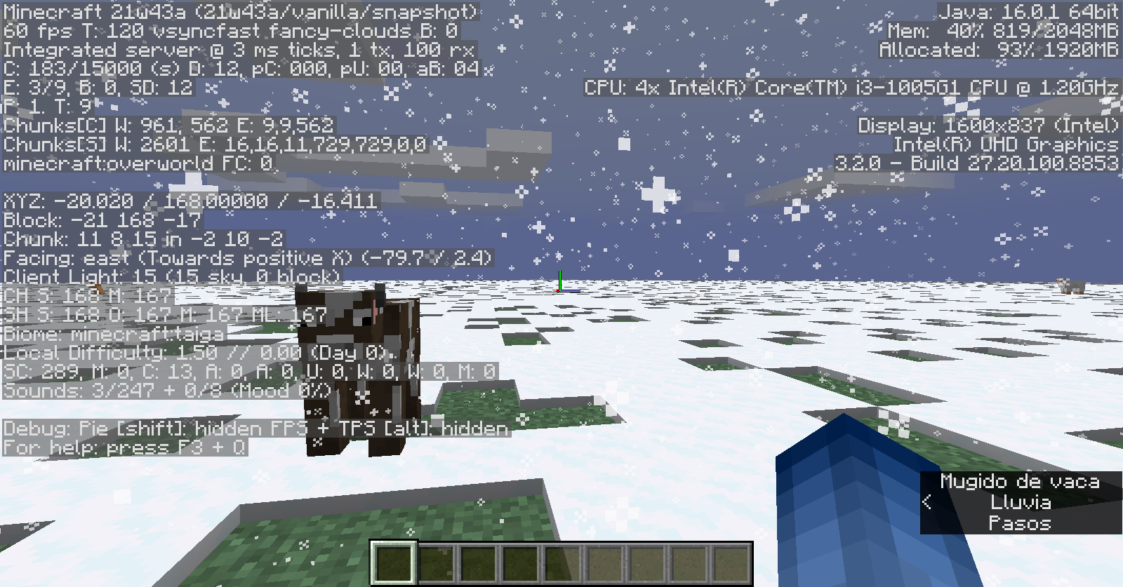 → ❌ Rain sounds are playing although snow falls and accumulates on all blocks. Rain particles can also be seen briefly appearing on top of some blocks, even if they are covered by snow.