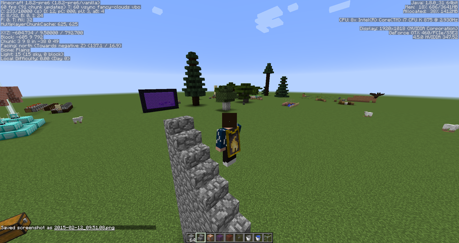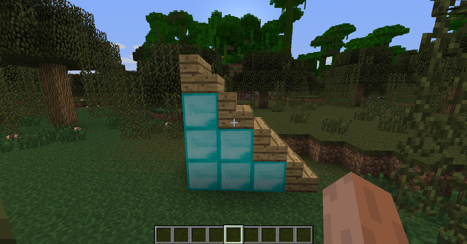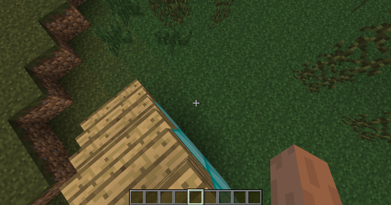 While sneaking, if one steps down a half-block, they can fall off of the blocks being snuck on. For instance, descending stairway while sneaking while walking at a diagonal will result in falling off of the stairs, instead of remaining on them as would happen on a flat path.