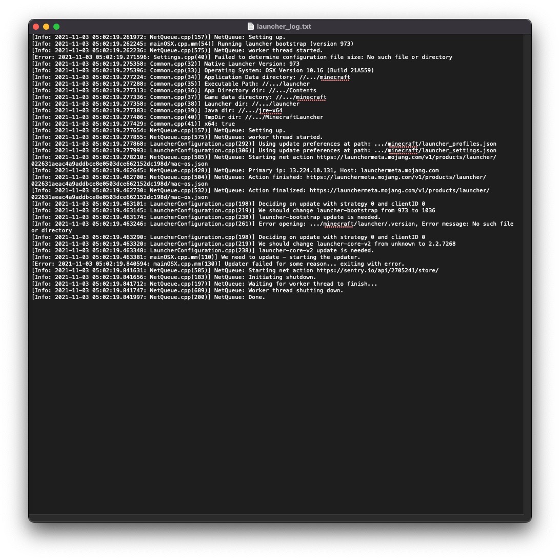 After updating to MacOS Monterey Minecraft will no longer launch. It will open, display the update screen then crash.