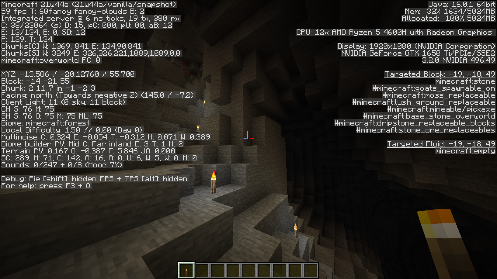 Notice the caves generating below y=0, in chunks that were already generated in 1.17.1, will be made of stone instead of deepslate