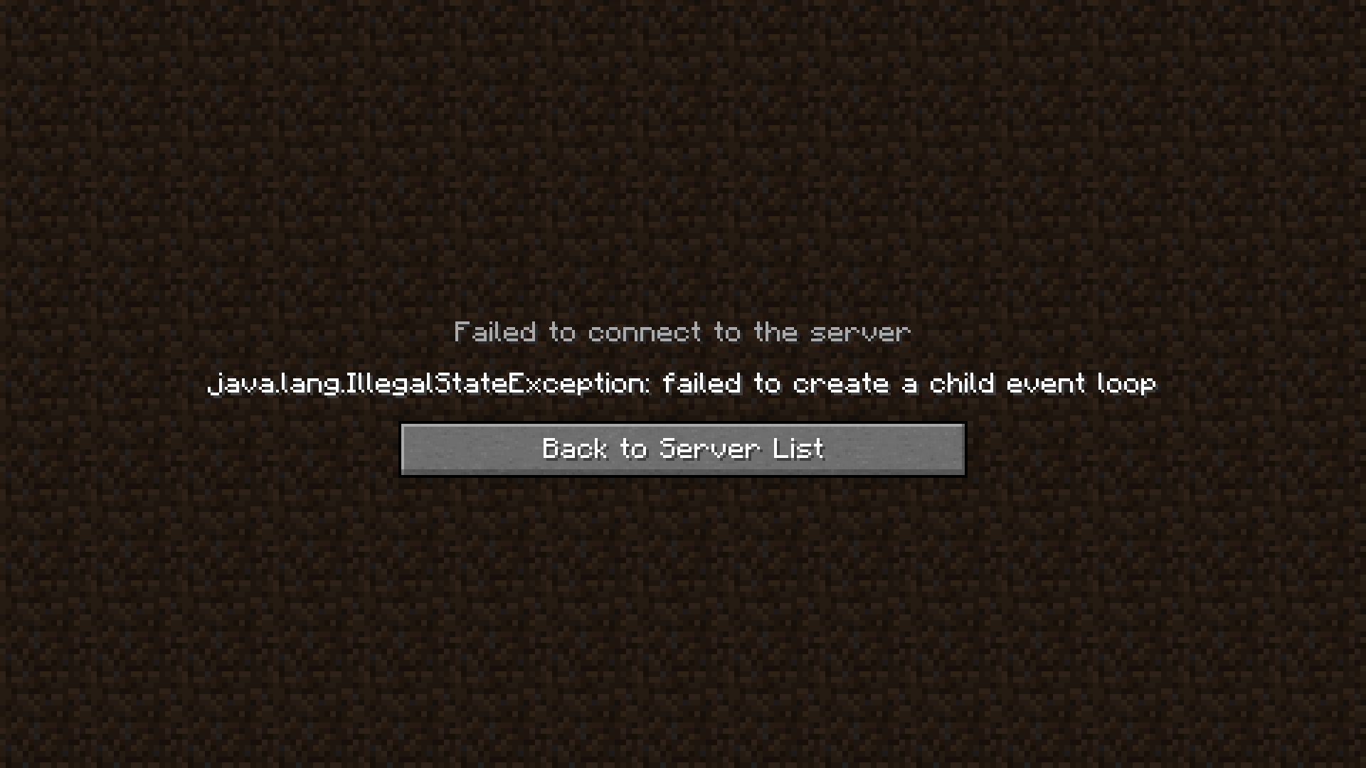 "java.lang.illegalstateexception: failed to create a child event loop". I tried to fix it by myself, but nothing worked