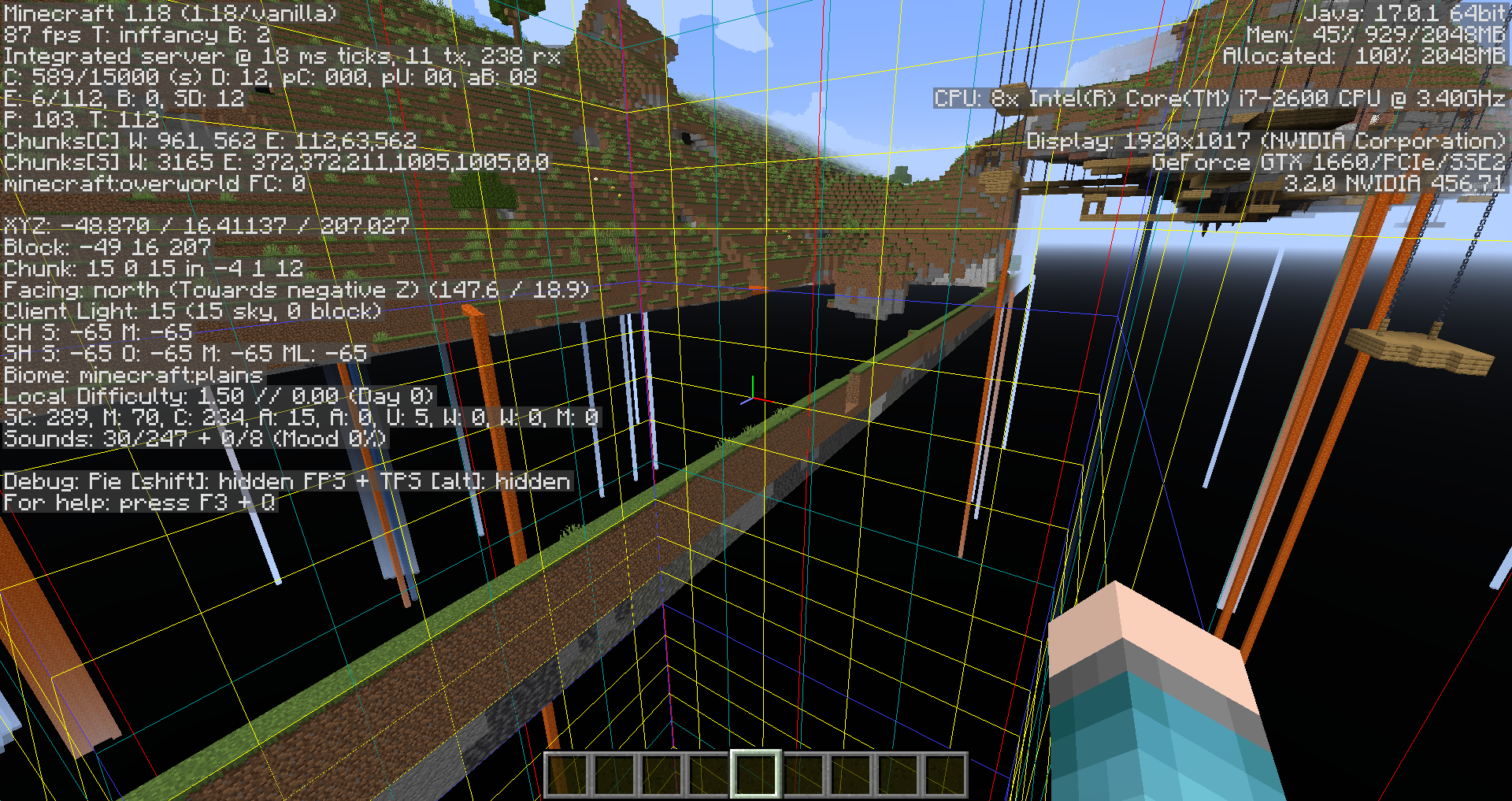 For starters, upgrading old floating island worlds to 1.18 from 1.17.1 results in chunk blending not working as expected. Long and continuous lines of blocks at y level 0 can be seen between the borders of old chunks and new chunks.