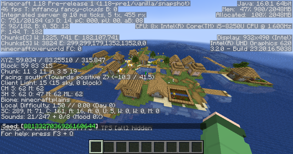 Its possible for village to generate in the middle of the ocean, without some island support. It's either the cave carver carve is island to make village float or its is a village in the middle of the ocean.