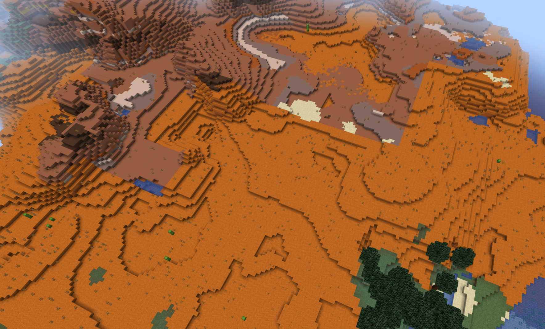 When old chunks are blending with new chunks in the badlands, the terracotta is in the old chunks while the red and are in the new chunks causing a very noticeable and hard-edged transition.