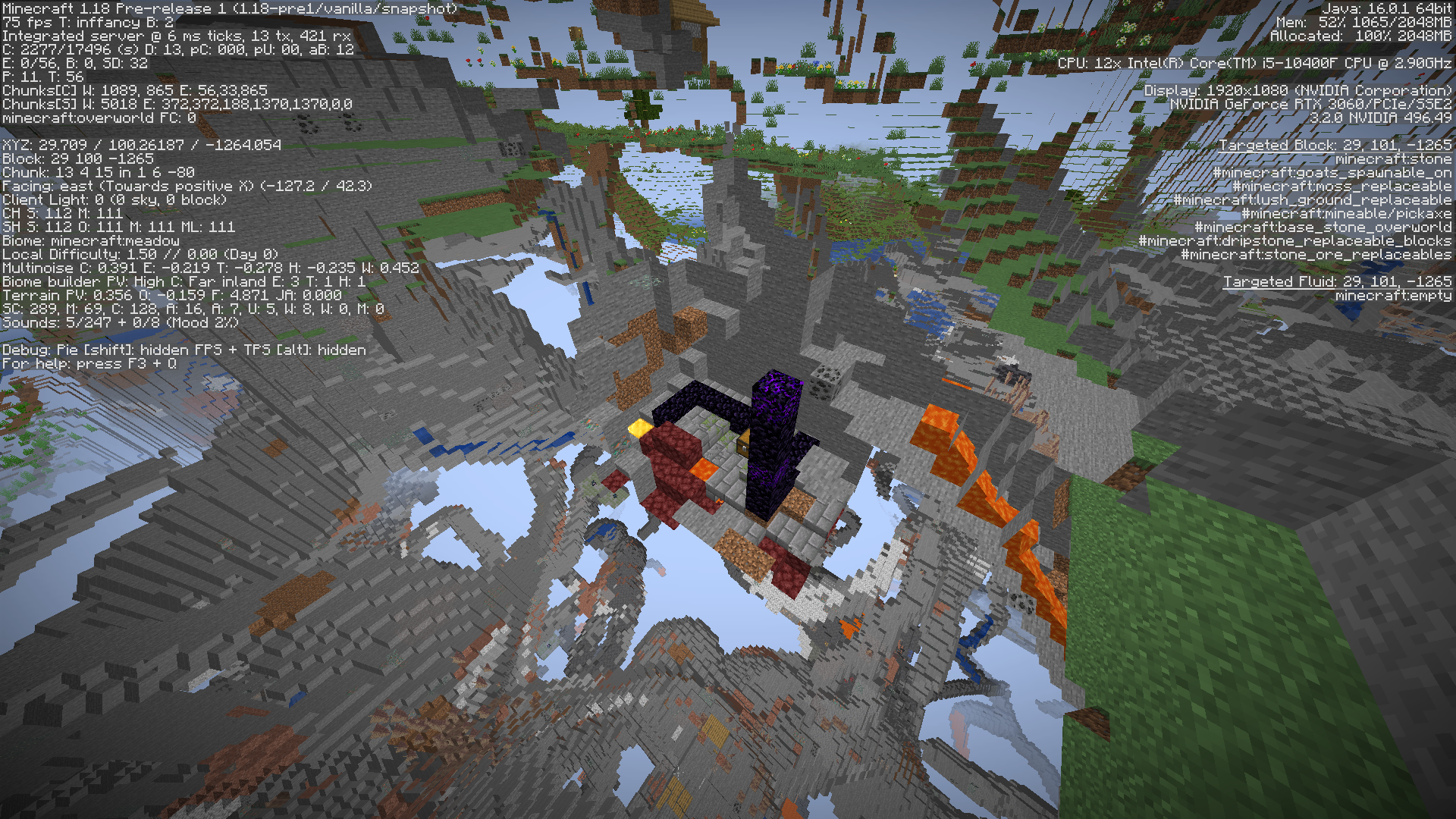 ** 3. 찾은후 tp를 했을때 그것이 지상에 없다면 관전자 모드를 사용해 지하로 갑니다.