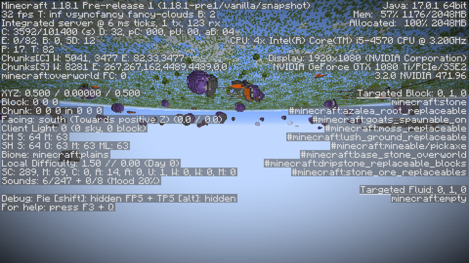 1. Create a Superflat world with Cheats on and use this preset: bedrock,123*stone,3*dirt,grass_block;plains