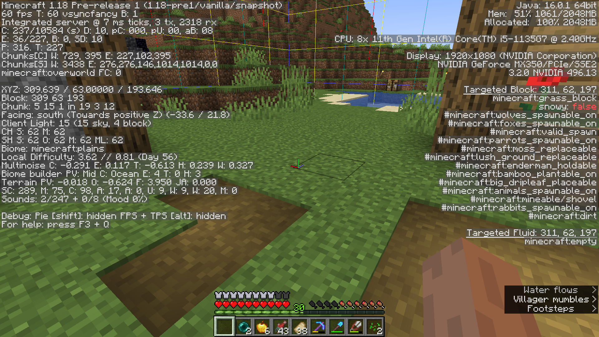 The chunk is in a village. the grass i break, sugarcane and looms i place are all reset everytime you quit.