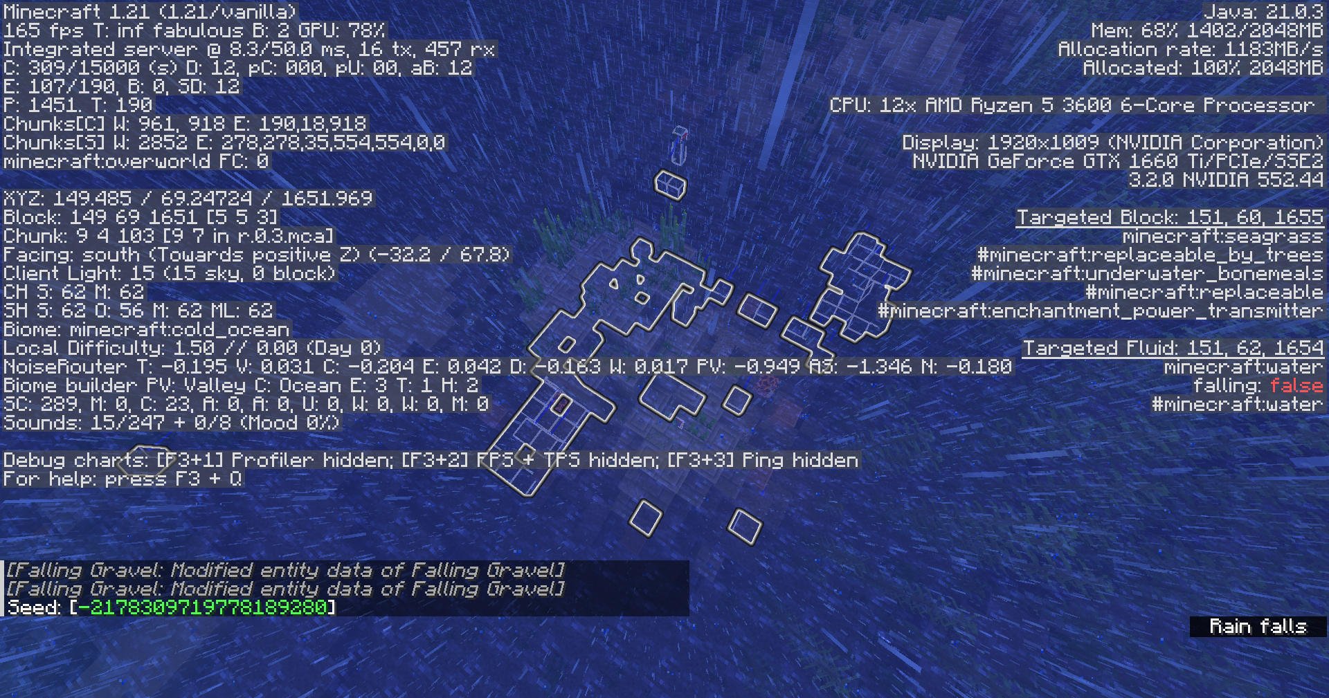 and take note as to whether or not sand and gravel within ocean ruins often convert into falling blocks when the world generates, resulting in performance drops.