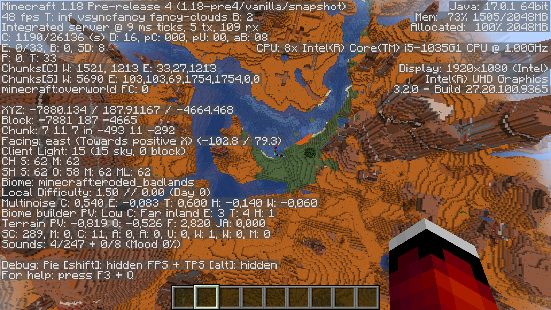 In the badlands biome, a river biome has been generated that is too large, which should not be the case, but ... this could be considered an oasis