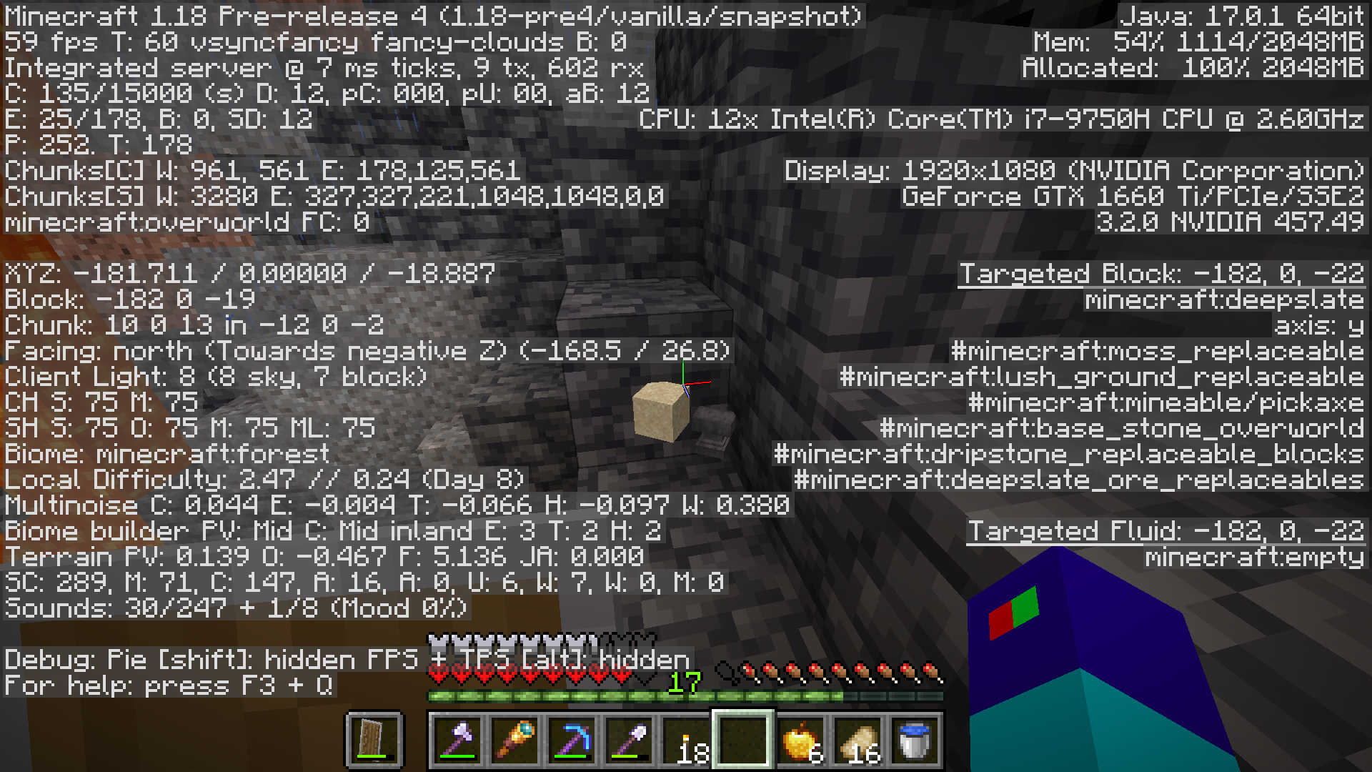 Since version 1.18's official release is planned to be 10 days from when I made this post, I decided the best way to navigate around my issues is to post another bug report. I realize that this is not the ideal solution, and I sincerely apologize for the inconvenience. However, I have been rather busy studying for exams, and I am worried that if I spent time to try to fix the issues I'm having on discord or create a Reddit account, I would not be able to notify anyone without giving an ample amount of time to fix this bug.