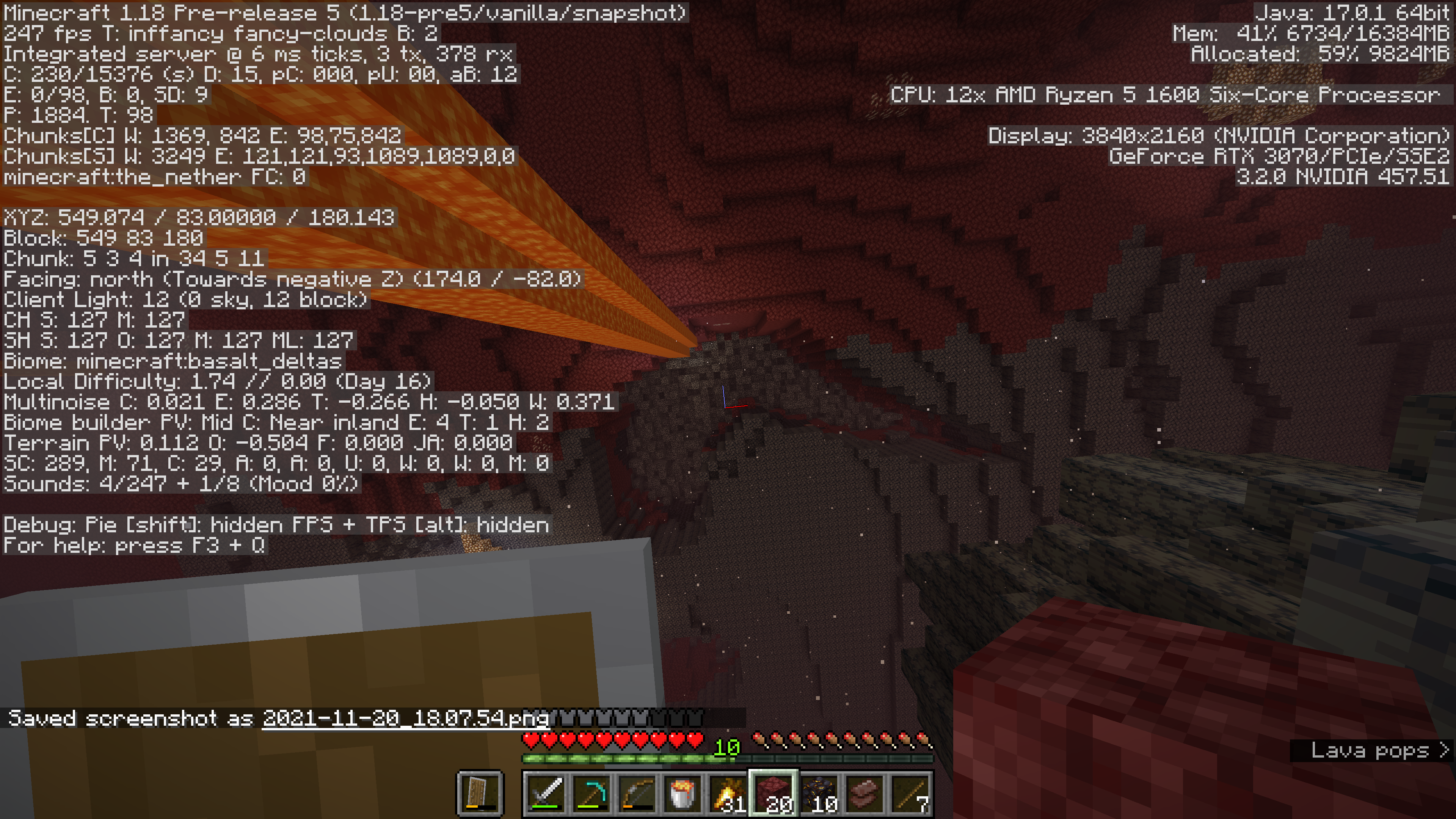 As the title says, bedrock is visible in the nether due to a cave carver. This occurs on the ceiling.