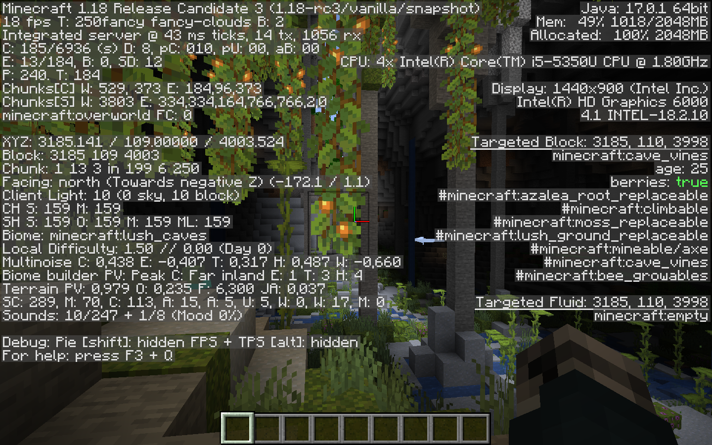 In the biome of lush caves, FPS sags very much, it can drop to 0, I also found flying light berries The game starts to log out because of the lighting in the biome of lush caves, you need to optimize the light