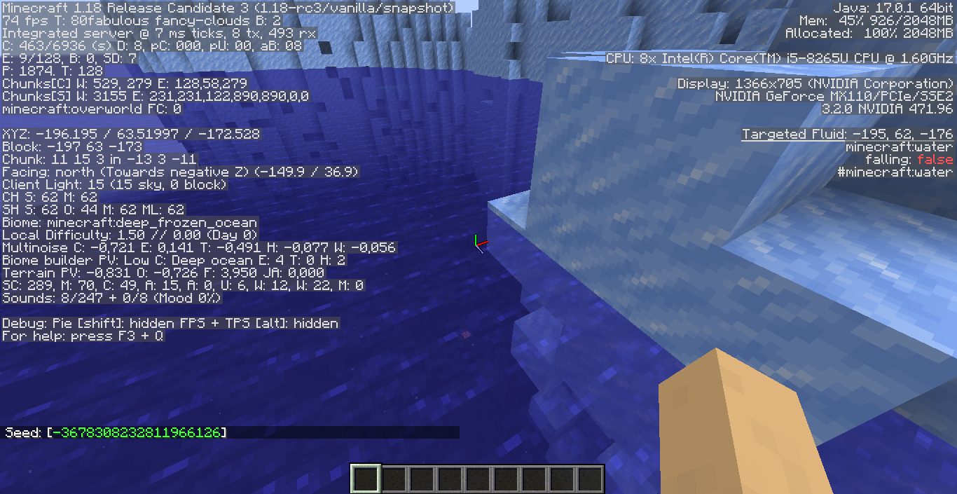 The world was updated from 1.17.1 to 1.18rc3