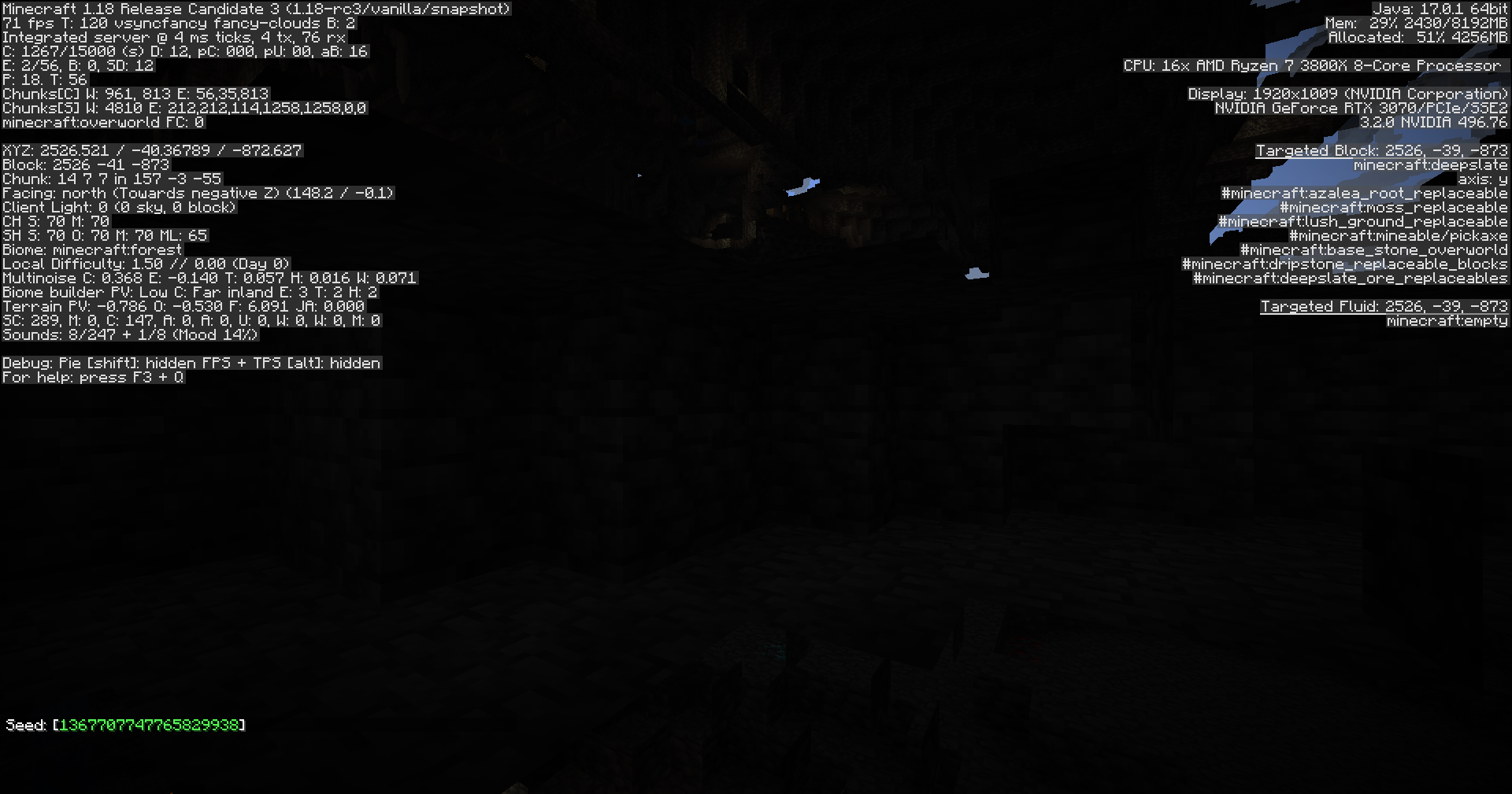 Dungeons do not generate in version Release Candidate 3. Cannot be searched for in creative. Generated at least in pre-release 3, possibly future versions.