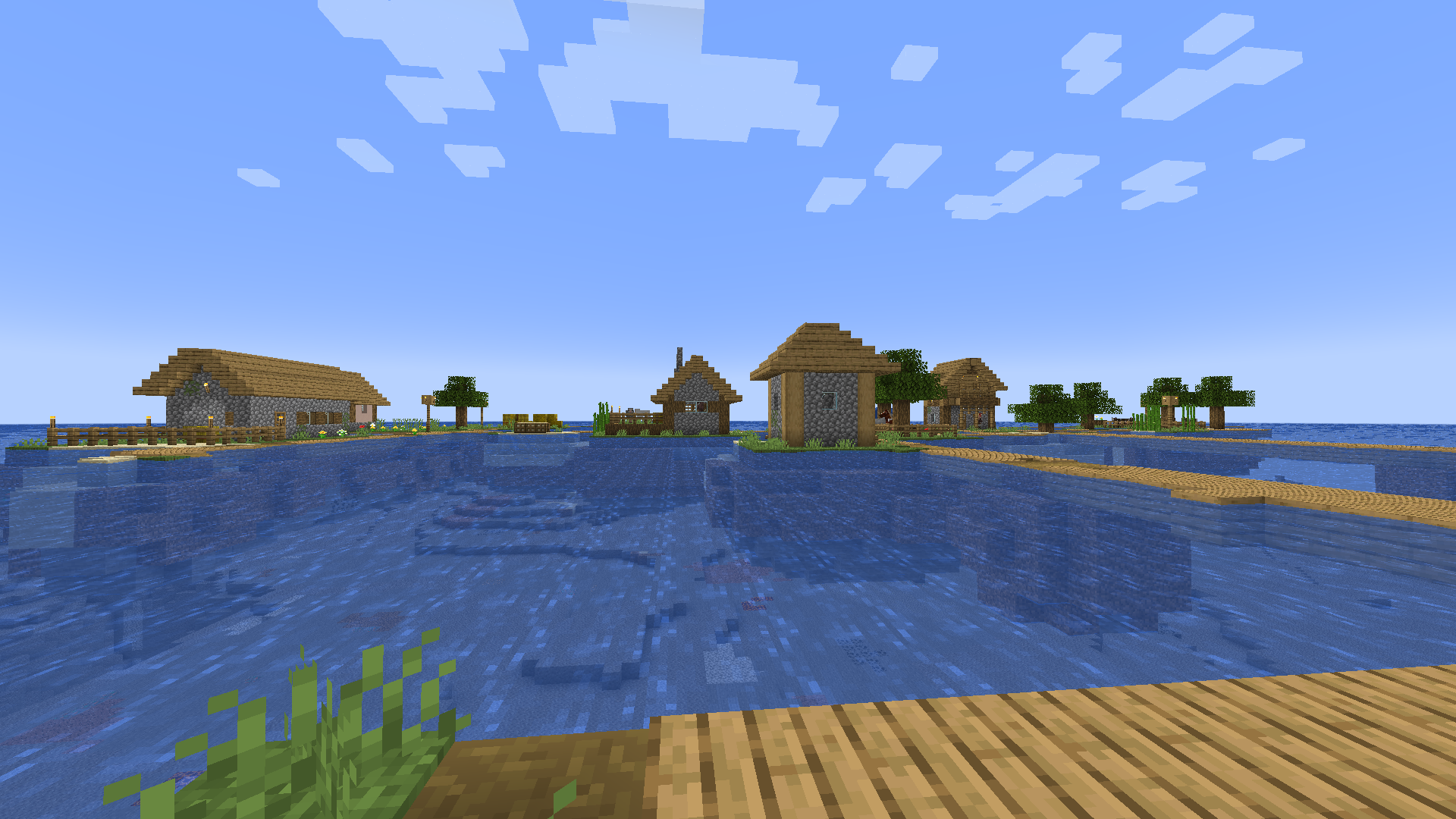 So I just spawned into my world, the seed was 8869510684472422104 and close to the spawn was an ocean, well that was what it seemed to be, it was a giant ocean sized aquifer and if you press f3 it shows that the biome is in fact a plains biome. Now this caused some weird terrain generation for example this village that spawned in the middle of what seemed to be an ocean. This makes the generation look really weird and a raid in this type of village would also be quite boring