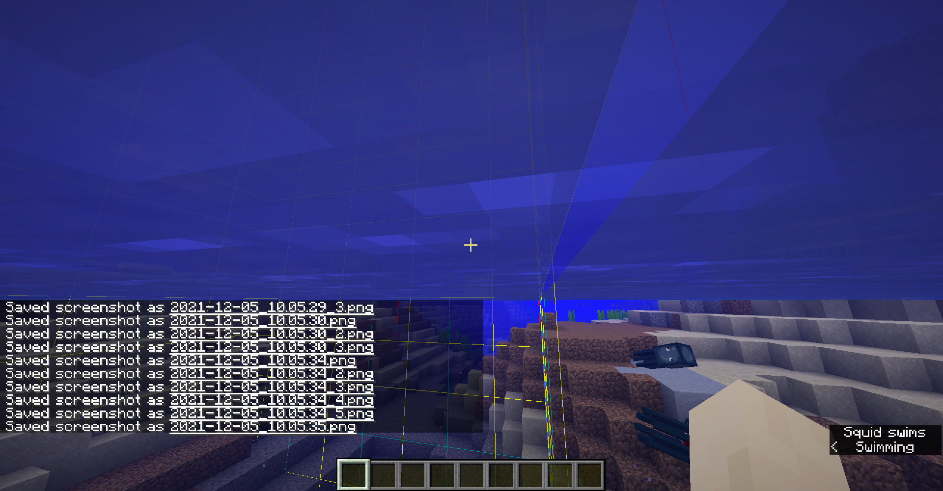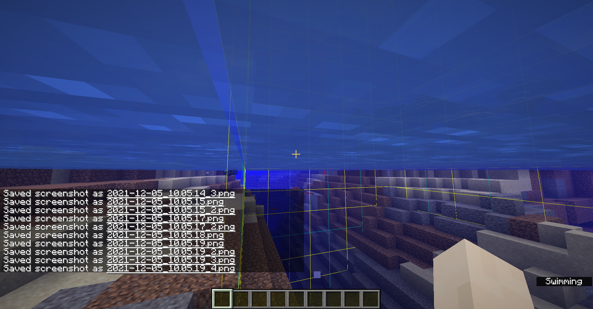 When underwater, the ice block's below texture does not appear and the chunk borders can be seen within a certain angle while moving from one chunk to another chunk.
