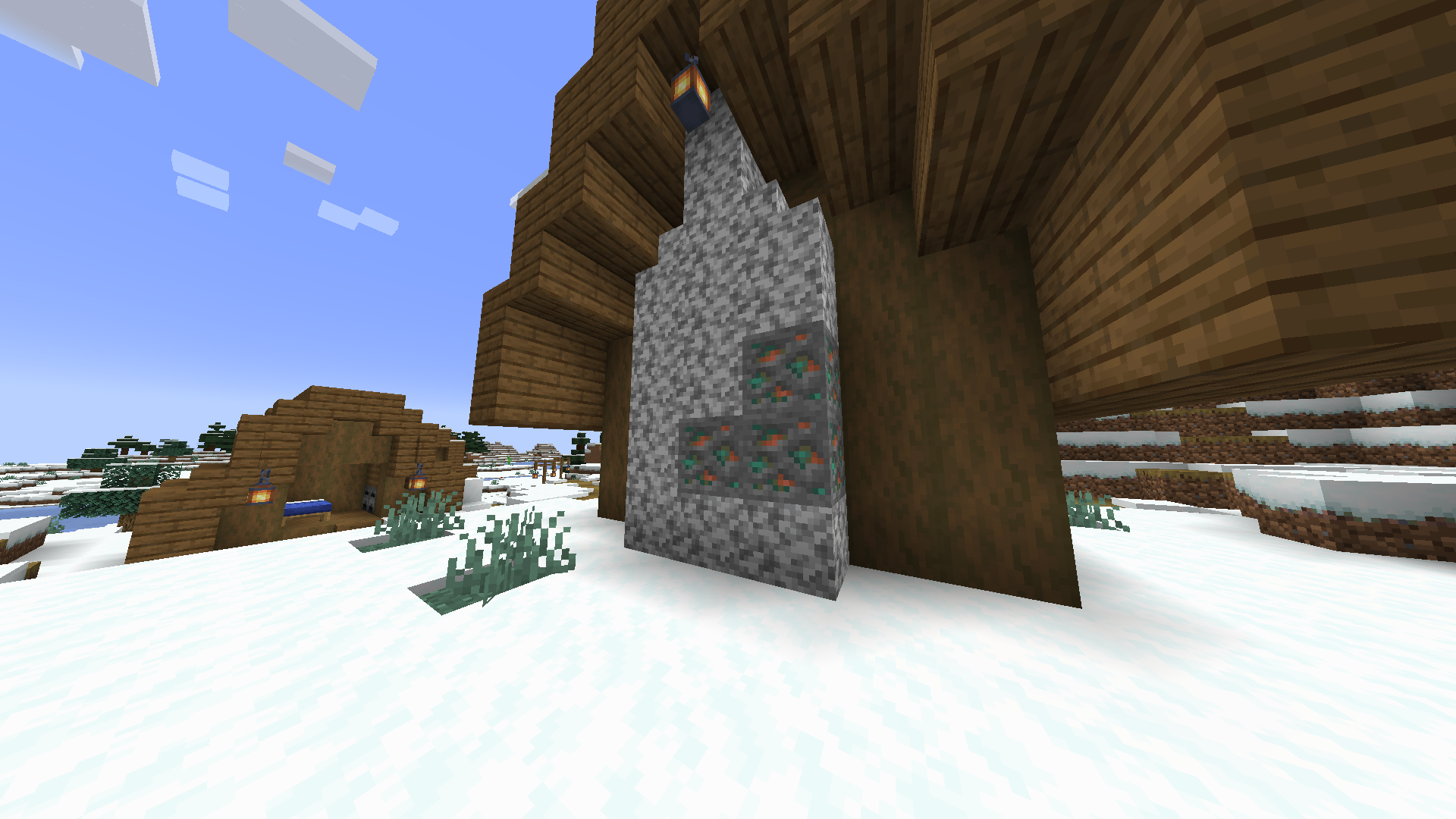 I walked in the snowy village and just inside a house I find copper ore in diorite.