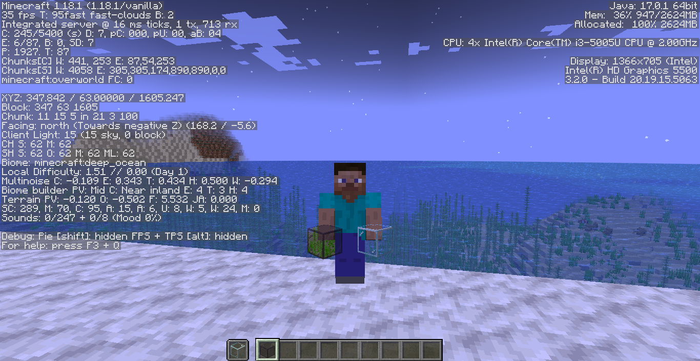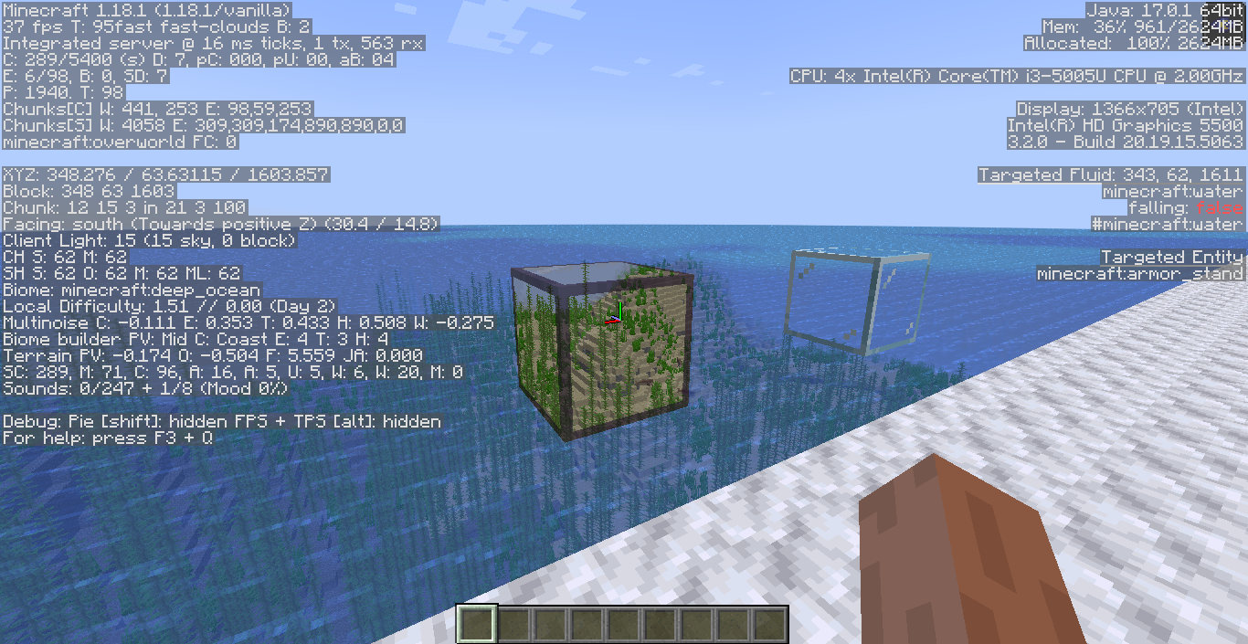 2. Type the command : /summon minecraft:armor_stand ~ ~ ~ {ArmorItems:{},{},{},{id:tinted_glass,Count:1}],Invisible:1b}