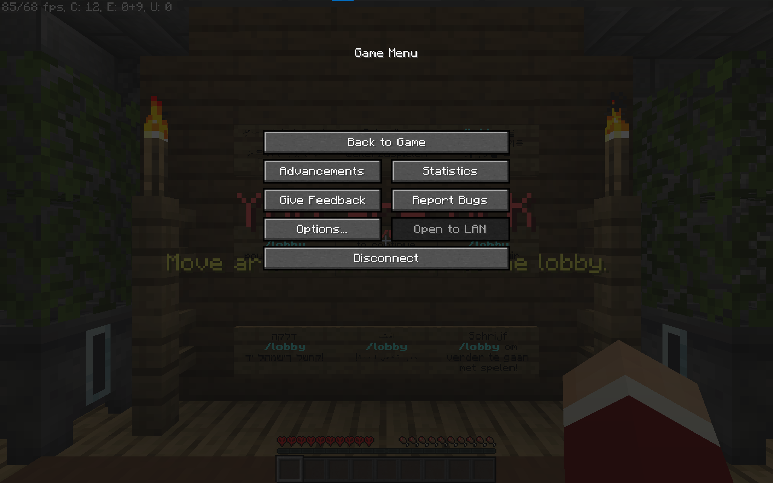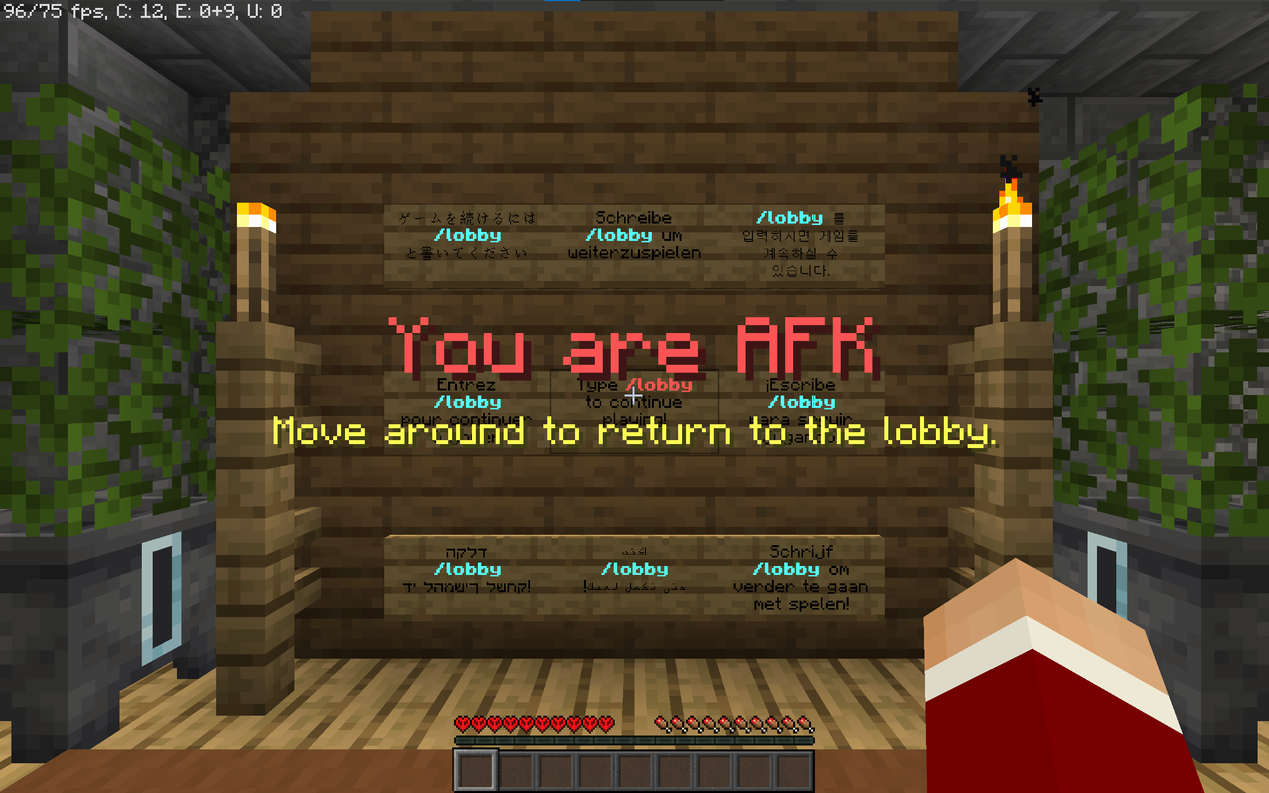 The bug occurs when the player is active on a server, getting a title on your screen (like when going afk on hypixel like in the included images) and disconnects. when the player later logs in to a single player world the title remains and won' t leave until the player either connects to a server again or relaunches the game.