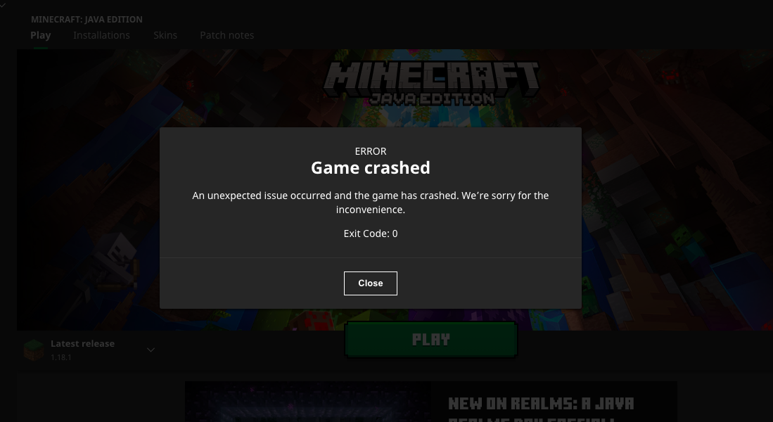 Every time I have tried to launch Minecraft it has failed to load and informs me that the game crashed and there is an unexpected error which has occurred followed by "Exit Code: 0". This is also shown in the image attached. I have tried making sure my system is up-to-date, reinstalling Minecraft etc. Please help me with resolving this.