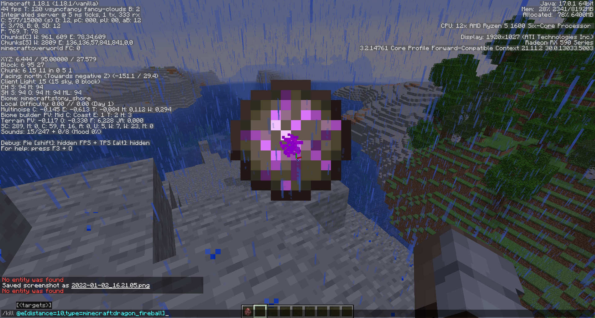 Summoned a dragon_fireball with the command: