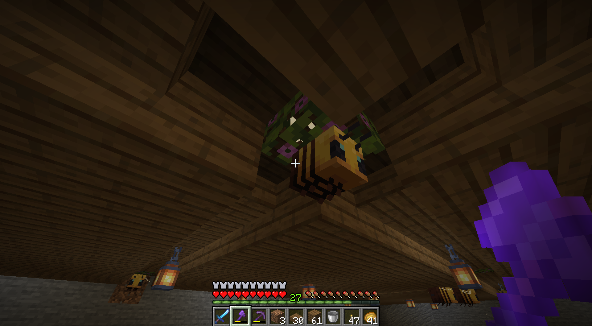 Notes: I've seen that they can gather pollen from top & sides normally. They can even see through an angle of a block Just to bottom doesn't seem to work. None of the bees have pollen w/ many flowers in the roof.