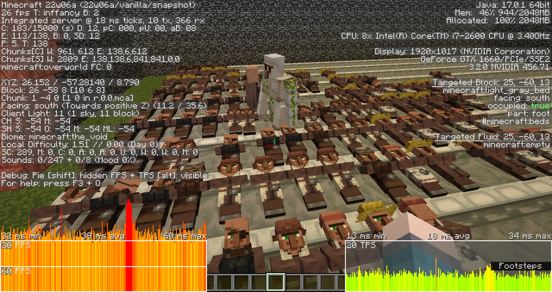 Villagers can cause server peformance loss if they are sleeping. Only standing villagers do not cause this.