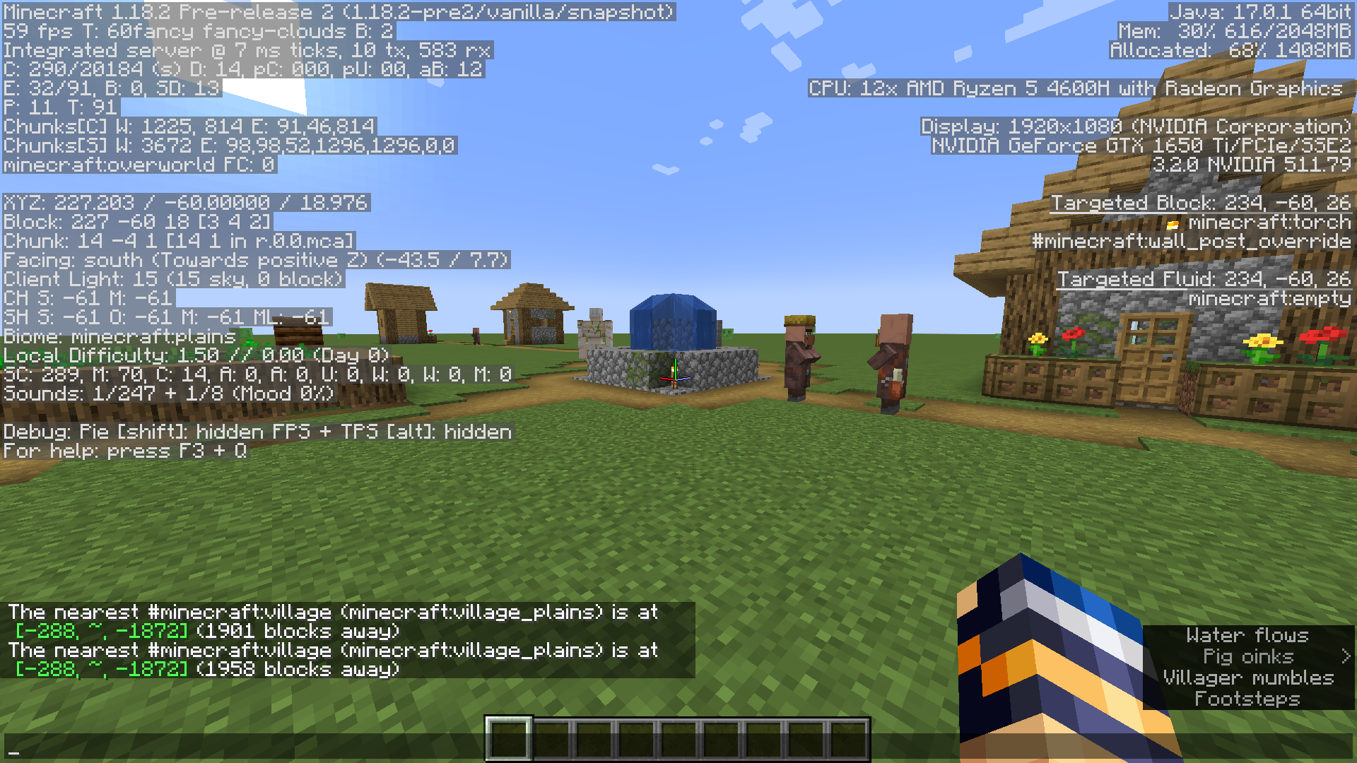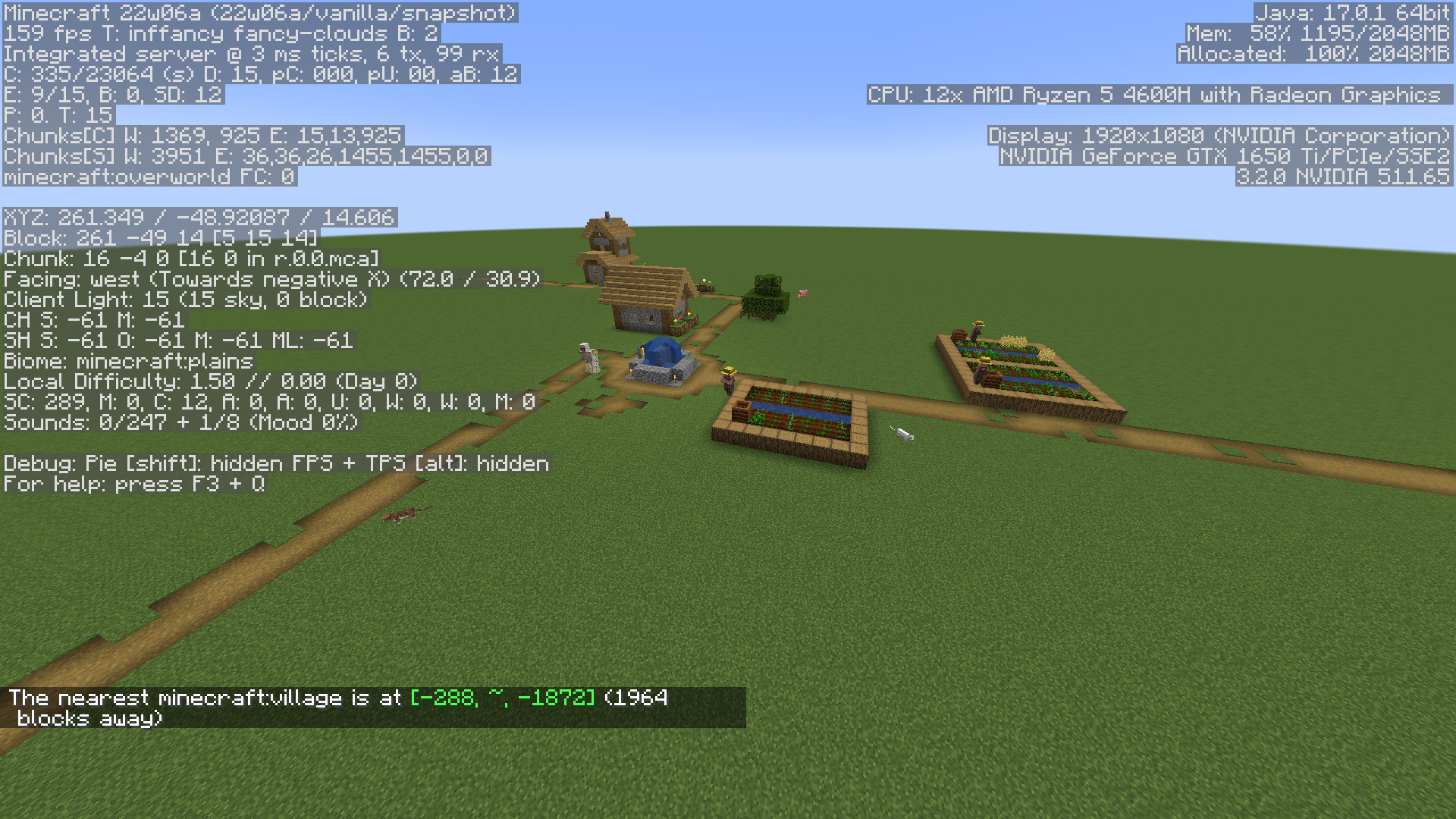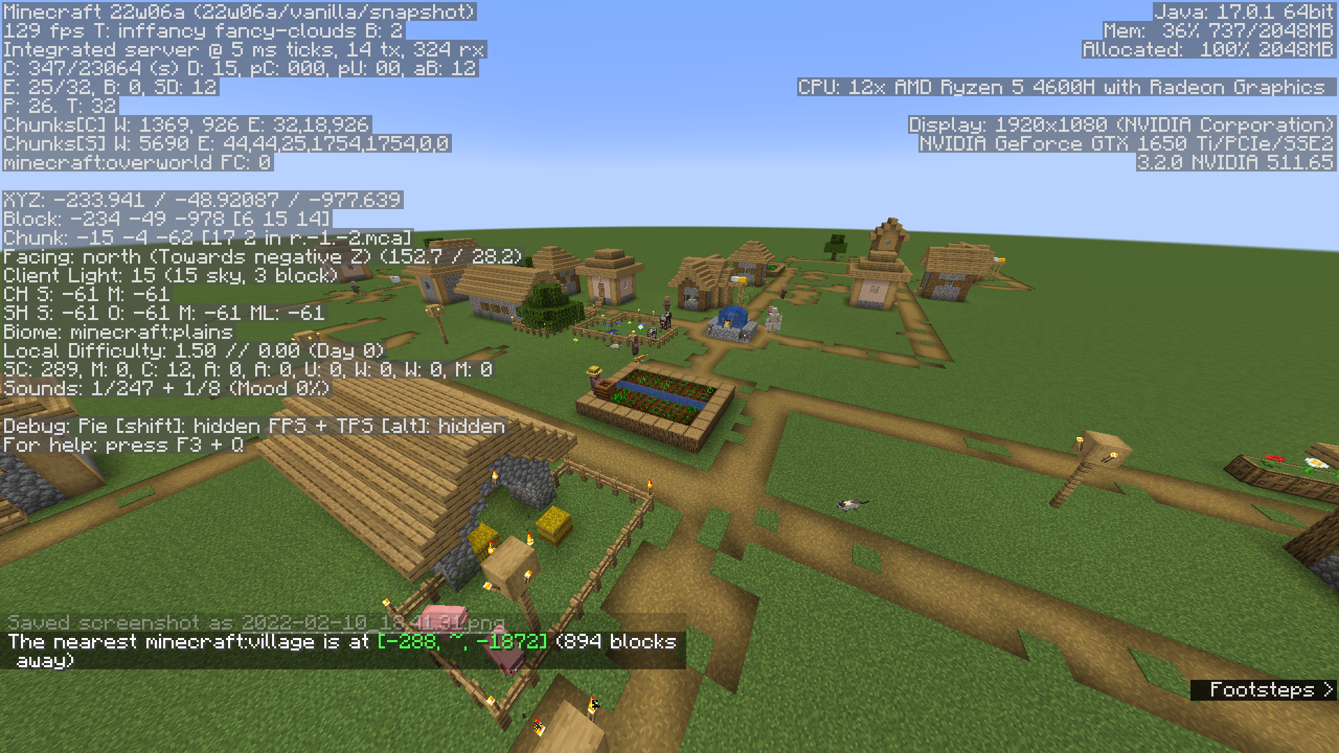 /locate command in does not locate the nearest village in the latest snapshot. I tested using the same seed in 22w05a and it works fine in that snapshot.