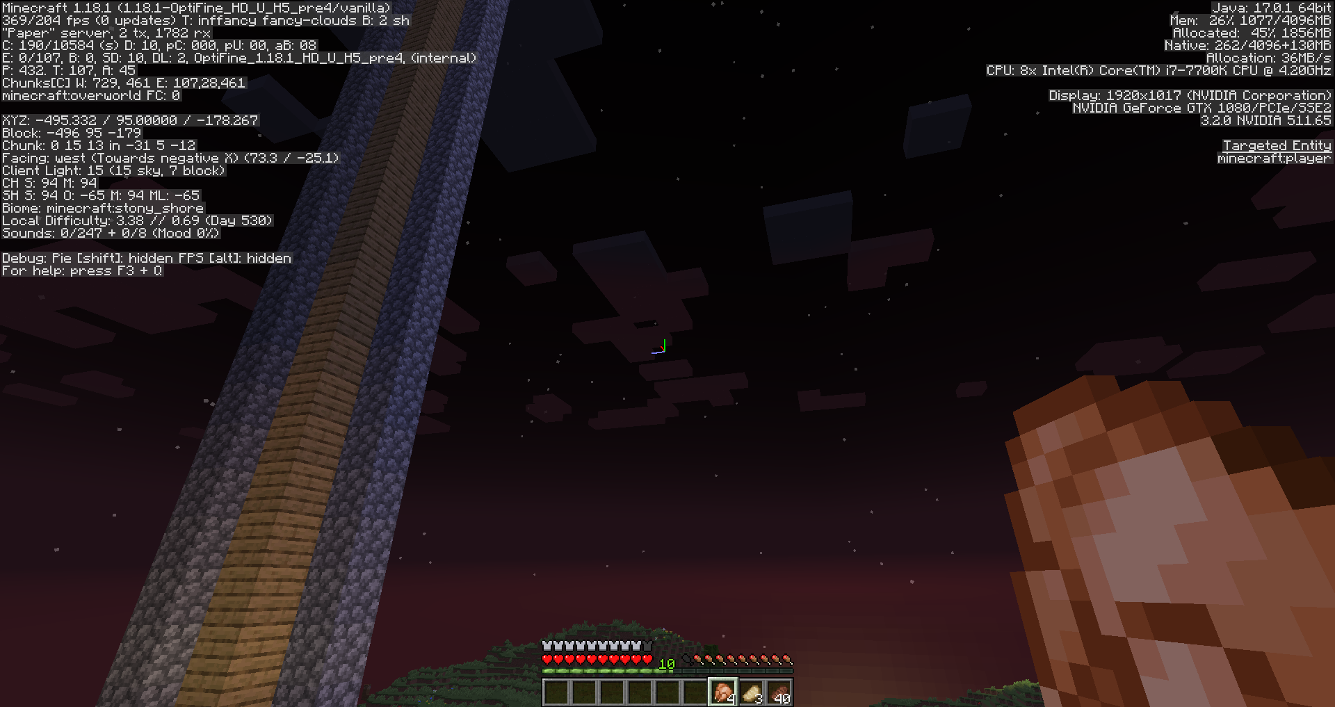 Go up to a player and push them. Then, between -9.5 to -37 (When looking at the F3 menu: pay close attention to Facing. The two sets of numbers in () the first indicates the angle from side to side, the other is up and down. The up and down direction is the one you want to pay close attention to. When between these two numbers, the player you are looking at will disappear from view between those two angles. I've did some extended testing and it appears that it only happens on y level 95.