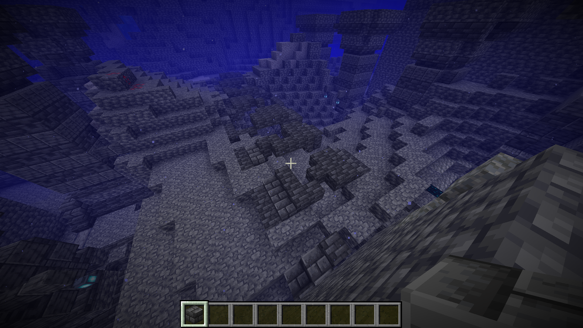 When I was exploring an ancient city, I found a weird generation in the water. The city was colliding with the cave generation! World type: Single biome, deep dark. Seed: -6796559248588515054. Coords: 40.16 -29.80 42.56 -1225.50 58.05