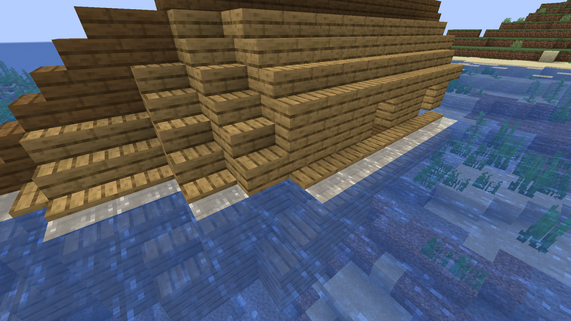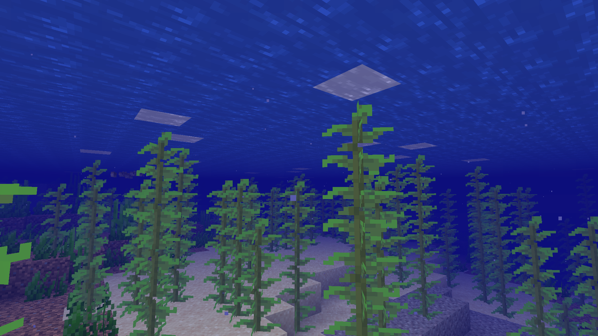 (most?) Water logged blocks at the surface of the water turns the water white/ lose color