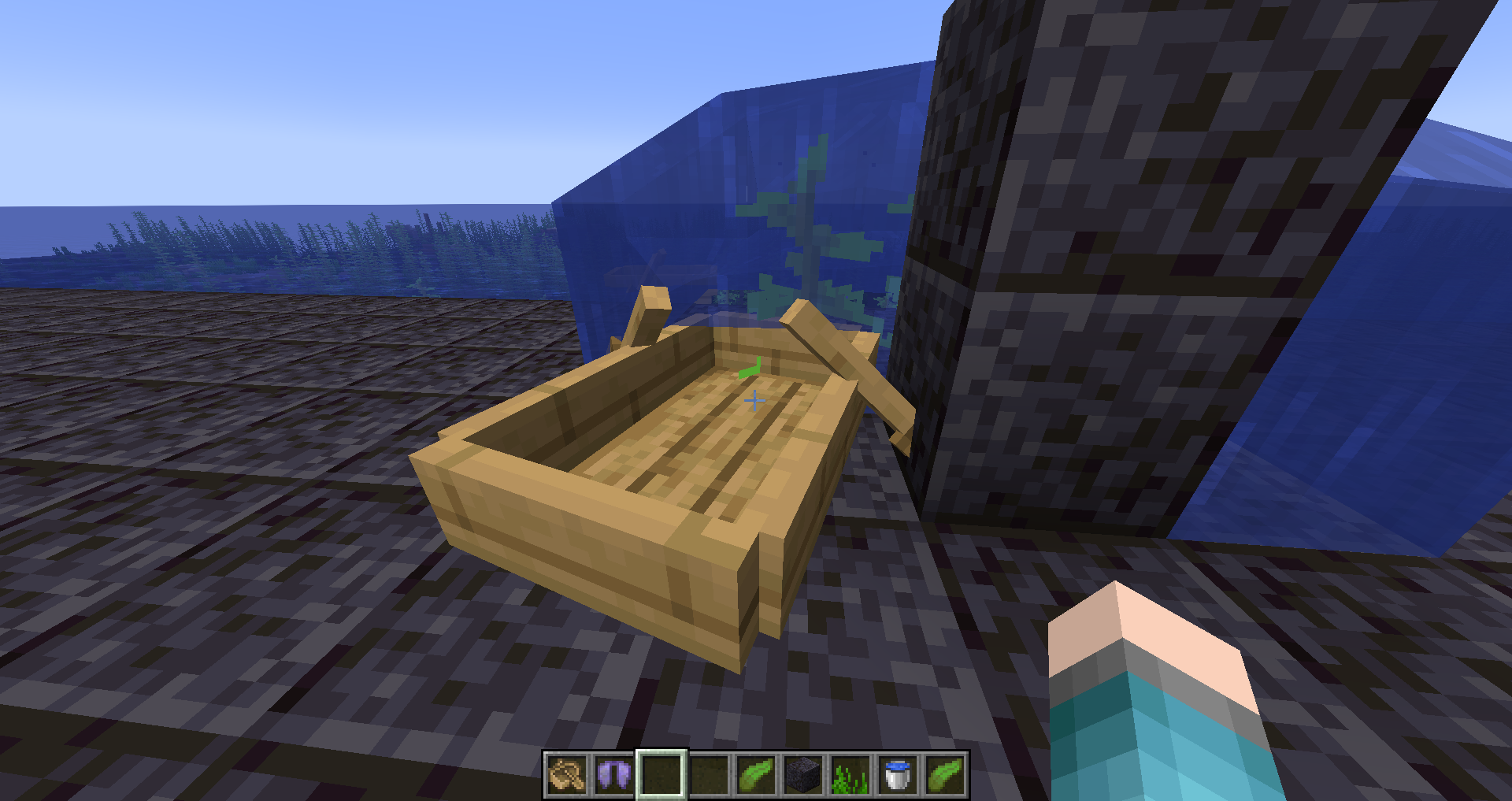 While boats block the rendering of water as expected, they do not block seagrass from rendering. As a result, it can appear inside the boat.