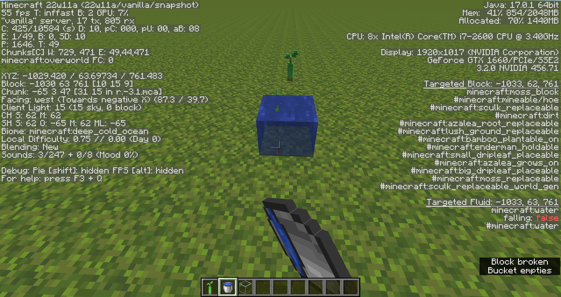 Despite being waterloggable, placing water inside the mangrove sapling breaks it. Placing the sapling inside the water doesn't break it though.