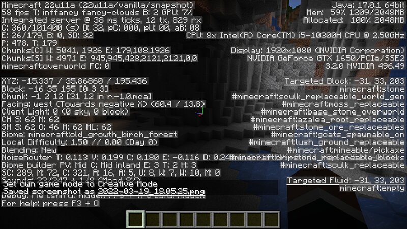 to reproduce fly around and read the depth value between a lush cave or dripstone cave on the same y through a normal cave