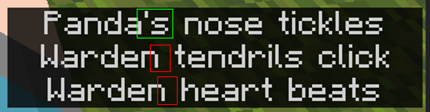 subtitles.entity.warden.heartbeat | Warden heart beats | Warden's heart beats | https://crowdin.com/translate/minecraft/10002/enus-engb#5295324 |