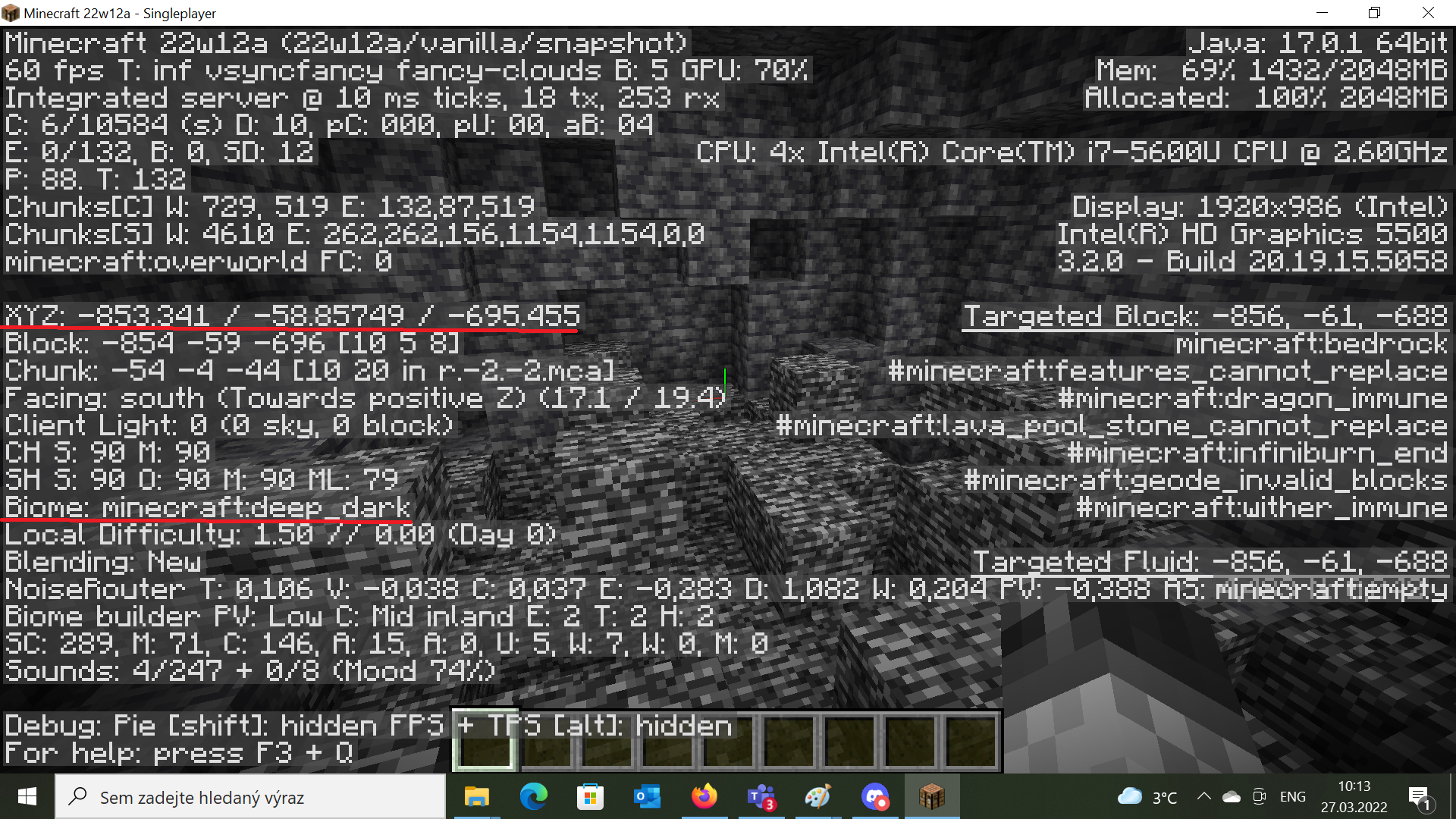 The Deep Dark biome can spawn outside caves, which means no sculk and very deep right above bedrock. This seed shows it: 6079396262202597399 at coordinates -853 -60 -695