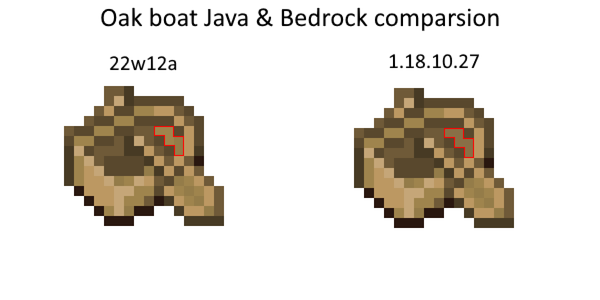 Oak Boat texture in Java is not match Bedrock Edition. I mark it with red outline.