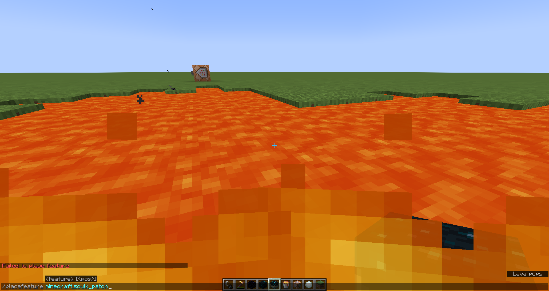 Sculk won't generate in lava using a sculk catalyst or /placefeature