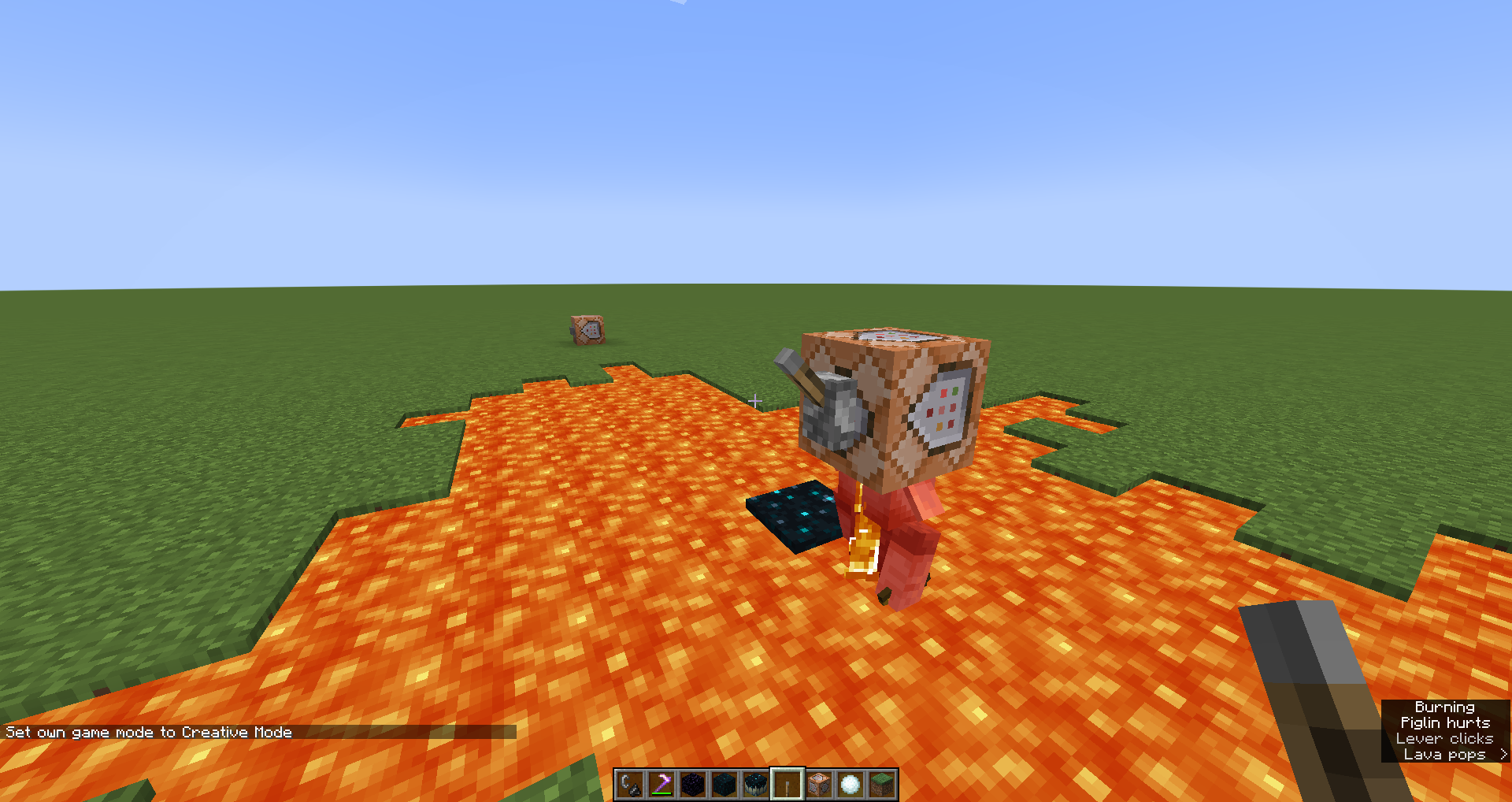 Find some lava or create your own patch of lava. (I would recommend doing this in a superflat world. Anyways, I would also recommend digging 1 block (don't dig further down) and digging up some blocks anywhere you want around the first hole you made to make the lake.)