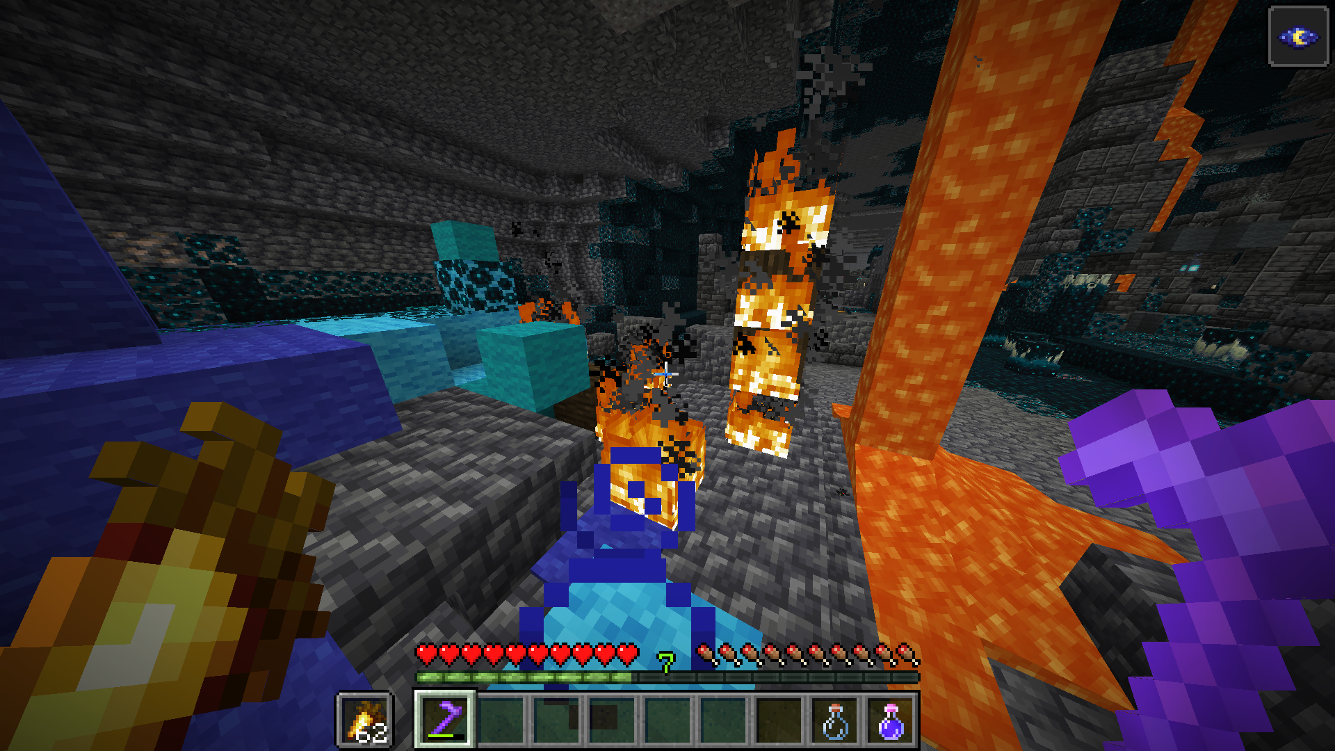 Coordinates: /execute in minecraft:overworld run tp @s 11179.59 -44.96 -1824.41 17.28 42.64Yeah, but its far enough not to cause any extra damage. The ticket author was concern about the damage that lava can make. There is lava at the bottom of the world in random caves, There is ancient cities at the bottom of the world as well. Not seeing anything weird about it. Floating column would be a different issue and I would guess we won't be looking into that.