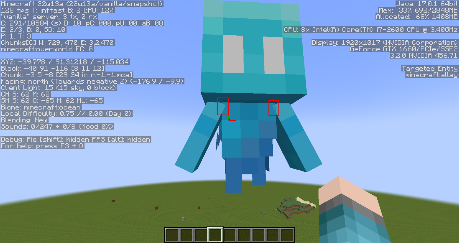 Take note as to whether or not z-fighting can be seen when the arms of allays intersect their bodies.