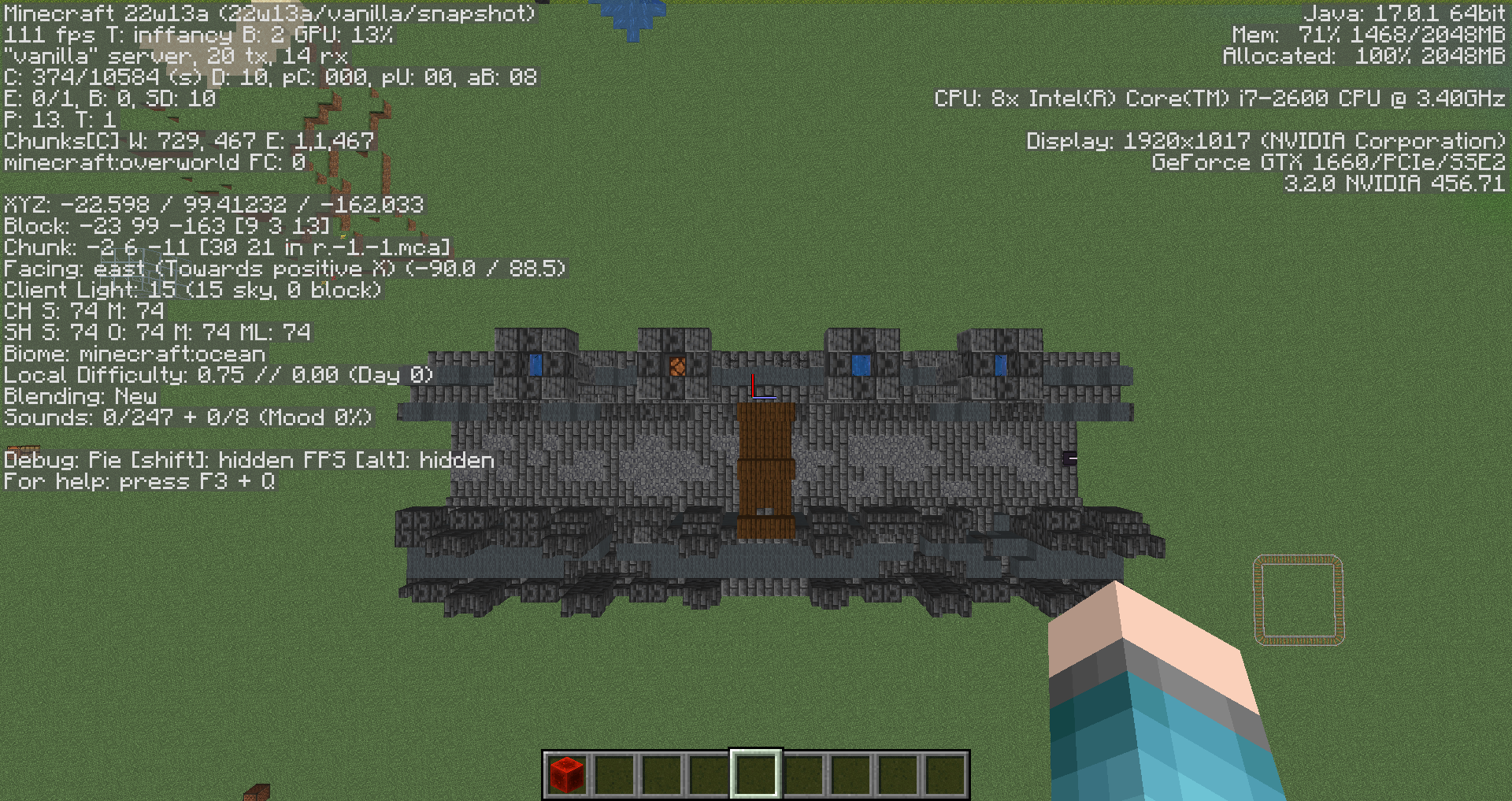 In the 1.19 experimental snapshot every lamp in the centres of ancient cities has a sculk sensor placed on top of it. However in 22w13a there is a sculk sensor missing from the top of the second lamp. This issue is present in every single ancient city.