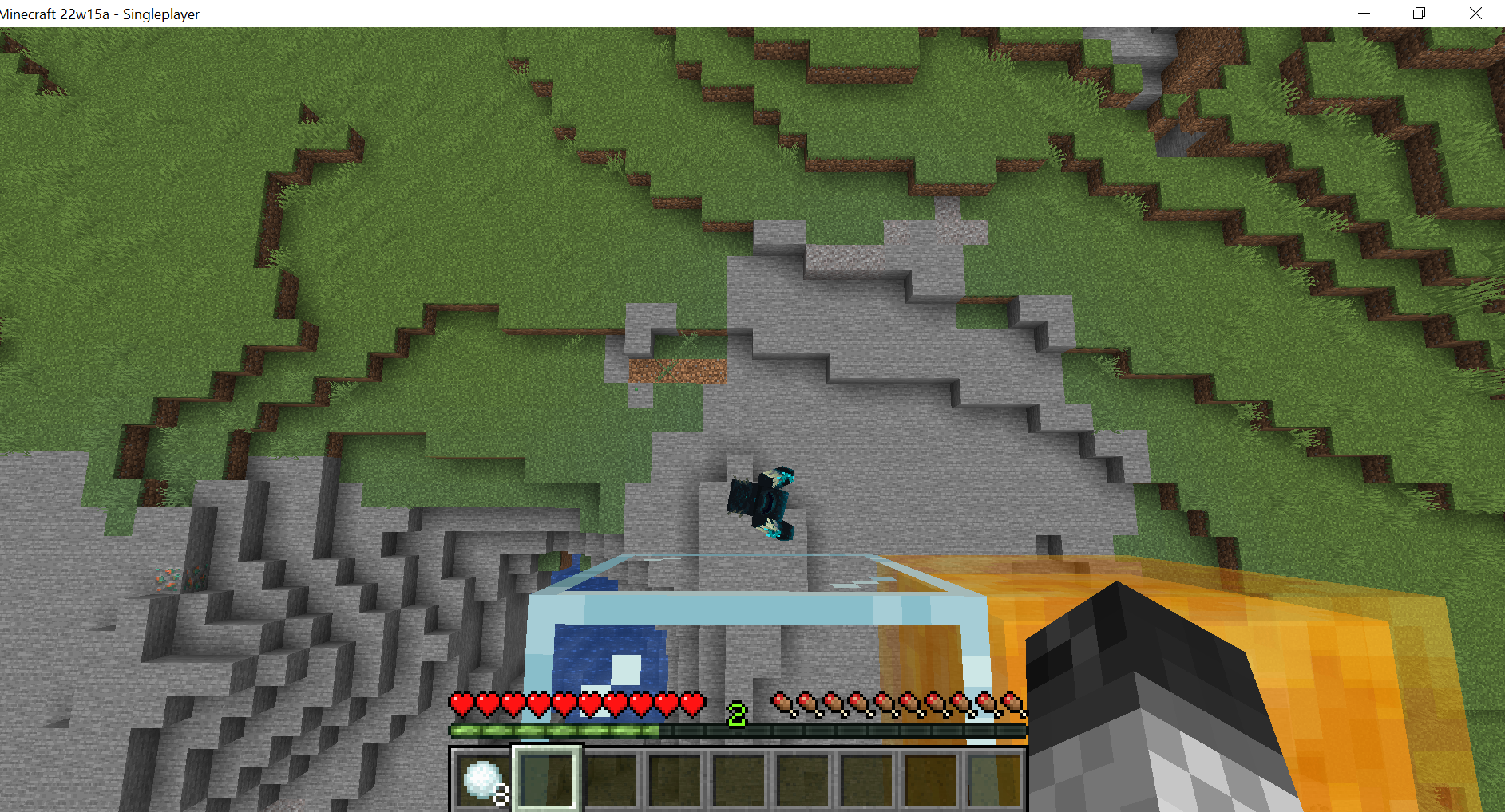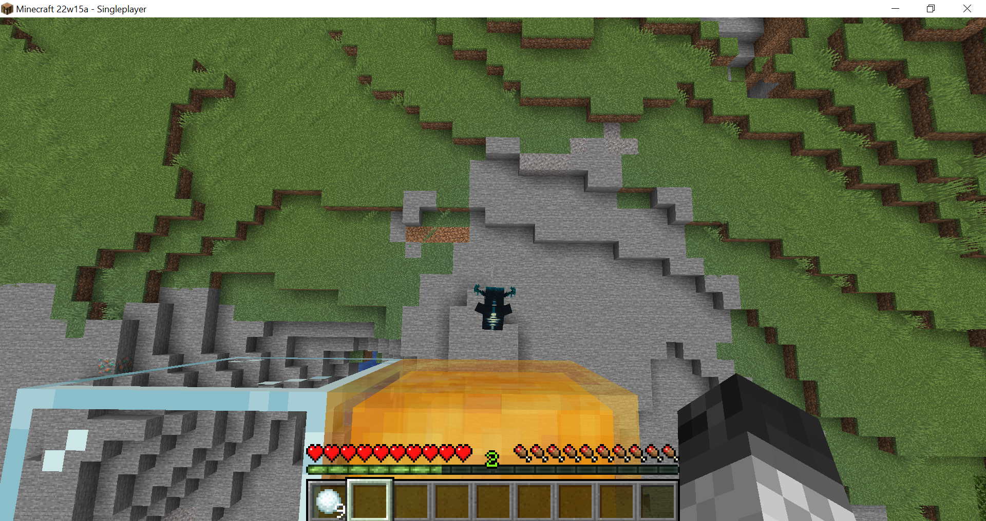 If you anger the warden and be 19.9 blocks above him(honey block, soul sand, mud, grass path, etc...) wait for him to start the sonic charge animation, before the sonic boom and step on a normal block (20 blocks above him), he will still do the sonic charge, without the sound and won't do the sonic boom. It doesn't have to be 19.9 blocks, it is enough, if you are fast enough to quickly jump to 20 blocks.