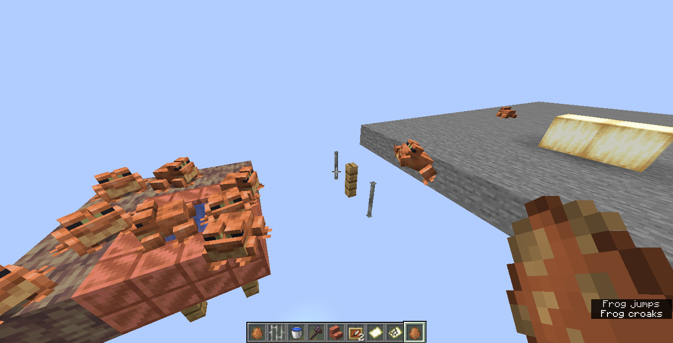 Frog fails to long jump to small blocks, such as fences and iron bars.