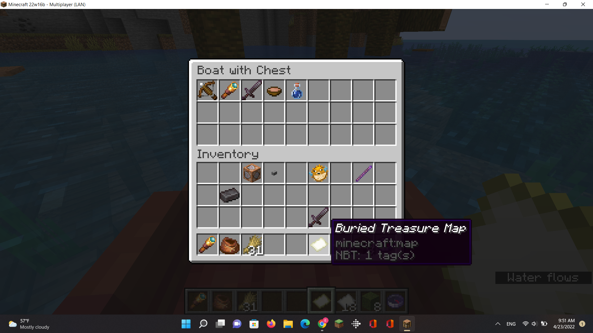 Anyways, I went into a chunk with a shipwreck. I have never loaded this chunk before. I opened the chest inside, and after an initial freeze (i could move, but not open chests or get back in my boat), I was able to open the chest and found this 'buried treasure map' See the attachmetn.